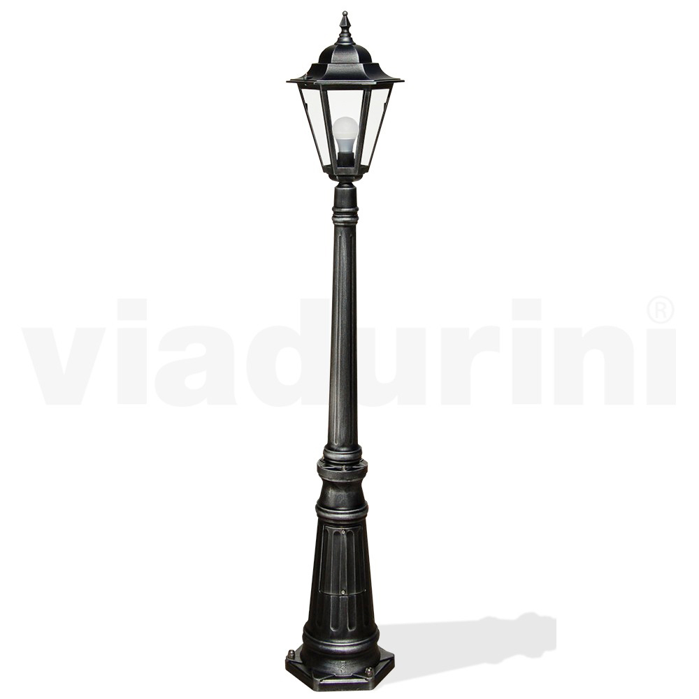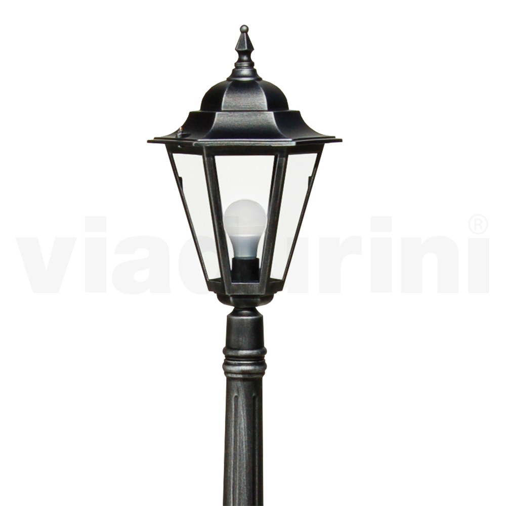 Deze elegante buitenlamp van gegoten aluminium combineert verfijning en duurzaamheid in een ontwerp dat de essentie van klassieke smaak vastlegt. De veelzijdige en tijdloze afwerking maakt deze lantaarnpaal een ideale aanvulling voor elk type omgeving, van de meest traditionele tot de moderne. De slanke lijnen van de structuur stijgen sierlijk op en culmineren in een lantaarn die een warm en uitnodigend licht verspreidt, ideaal voor het creëren van een suggestieve sfeer in elke buitenruimte. Met zijn elegante uiterlijk en duurzame constructie is deze lantaarnpaal de perfecte keuze voor wie tuinen, parken of opritten elegant wil verfraaien en verlichten .