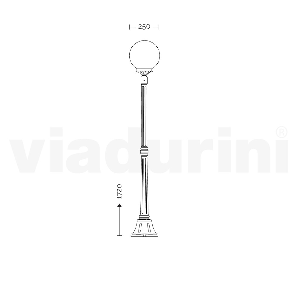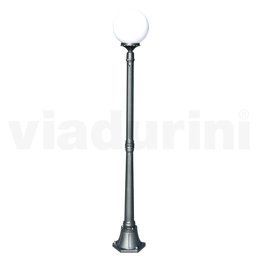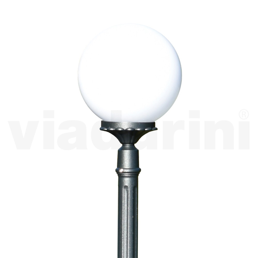 Tuinlamp gemaakt met een antraciet afgewerkte gegoten aluminium structuur en opalen acryl bol diffuser, volledig gemaakt in Italië.