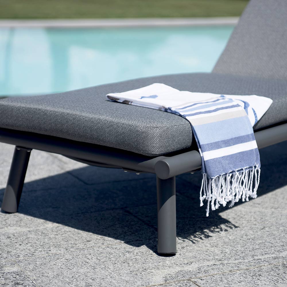 Deze ligstoel combineert comfort, elegantie en duurzaamheid en is daarmee de perfecte aanvulling op elke buitenruimte voor een verfijnde relaxhoek. Het aluminium frame zorgt voor lichtheid en stevigheid, waardoor hij ideaal is voor dagelijks gebruik in de tuin, op het terras of bij het zwembad.