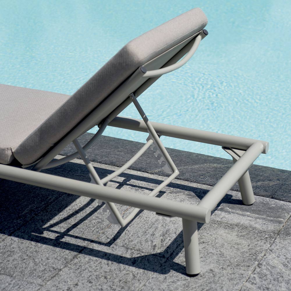 Met afmetingen van 196 x 70 x h. 35/90 cm biedt hij een ruim zitoppervlak en een verstelbare rugleuning voor elk moment van ontspanning, van lezen tot volledige rust. De kussens, bekleed met waterafstotende stof , zorgen voor zachtheid en functionaliteit, zijn vochtbestendig en behouden hun elegante uiterlijk, zelfs na langdurige blootstelling aan zon of water.