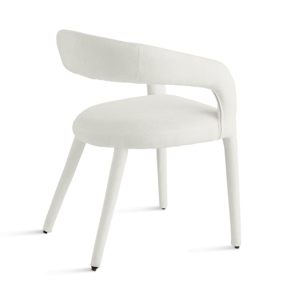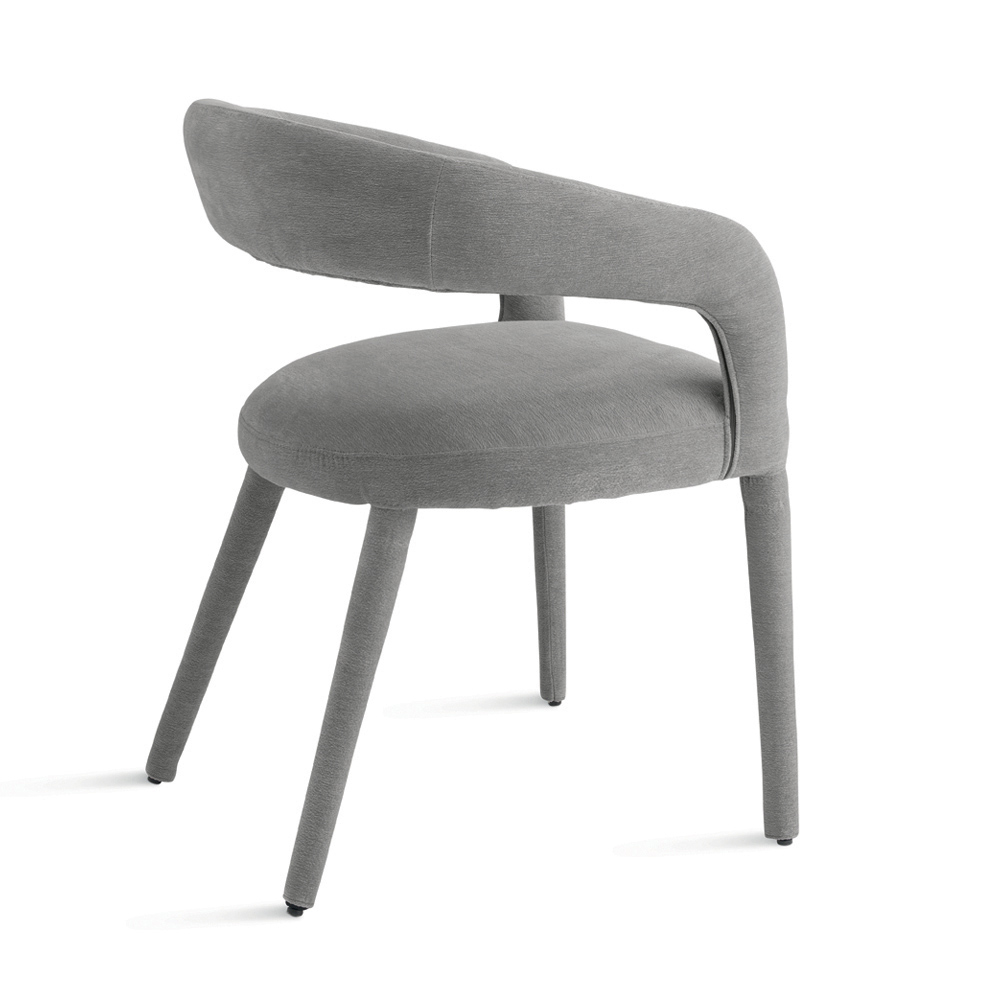 De strakke lijnen en uitgebalanceerde proporties maken deze stoel discreet maar elegant, waardoor hij gemakkelijk in diverse interieurs past. De naadloze bekleding zorgt voor esthetische samenhang in het ontwerp en versterkt de moderne, minimalistische uitstraling van de stoel.