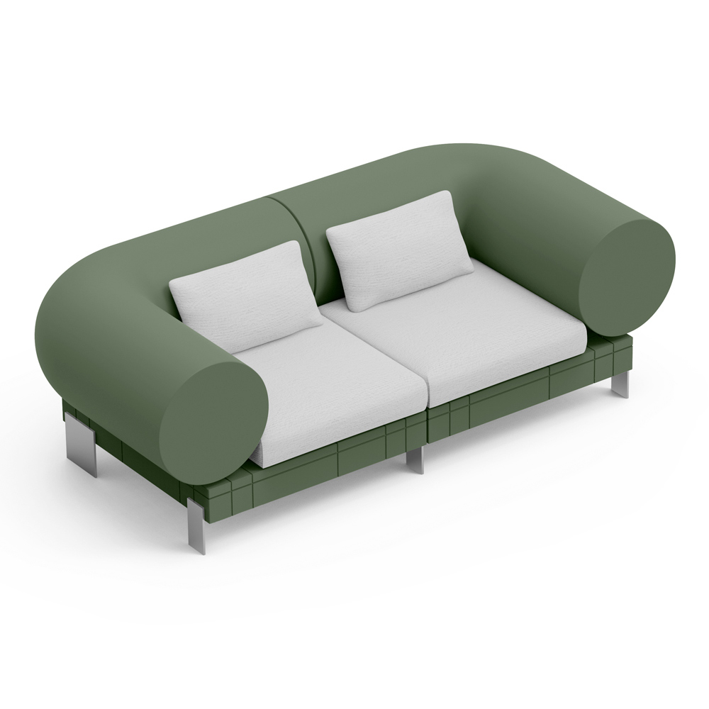 Deze eigentijdse bank combineert comfort en modern design in een opvallend meubelstuk. Gekenmerkt door strakke lijnen en een innovatieve vorm met zijdelingse cilinders, biedt de bank een vleugje unieke en functionele stijl . Het kleurenpalet introduceert een element van helderheid en frisheid in elke woonruimte.
