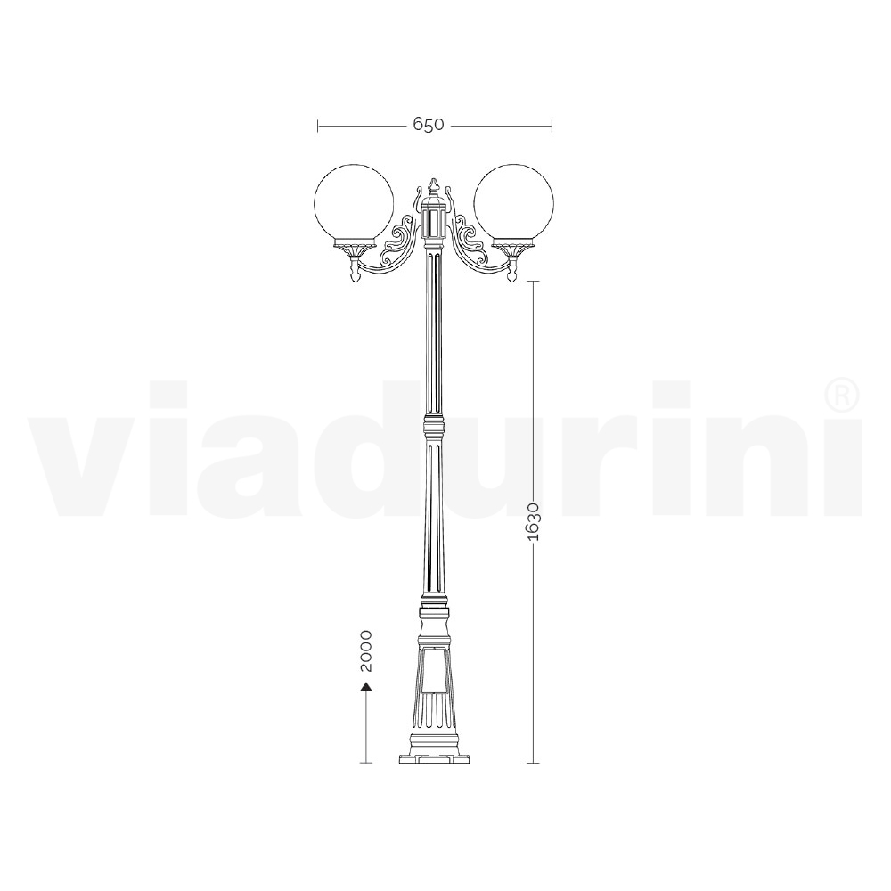 Tuinlamp gemaakt met een structuur van gegoten aluminium en een diffuser van opalen acrylbollen , volledig gemaakt in Italië.