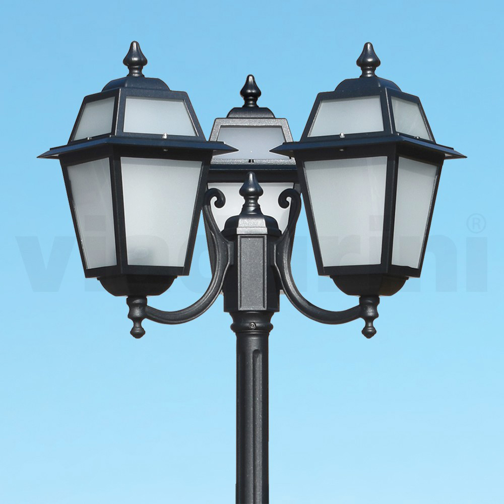 Deze straatlamp van gegoten aluminium met zijn antracietkleurige afwerking is een stijlvolle keuze voor elke buitenomgeving. Het klassieke en elegante ontwerp is voorzien van ambachtelijke details die de sfeer van vervlogen tijden oproepen. De 3 lantaarns, met aandacht voor de kleinste details, verspreiden een warm en zacht licht, ideaal om een lichtgevend pad in uw tuin te creëren of om een ontspanningsruimte buiten stijlvol af te bakenen. Stevigheid en schoonheid komen samen in deze straatlamp, ontworpen om lang mee te gaan en bestand te zijn tegen weersinvloeden. Elegant en functioneel , het zal de lichtgevende signatuur van uw buitenruimte zijn.