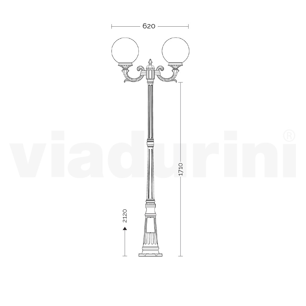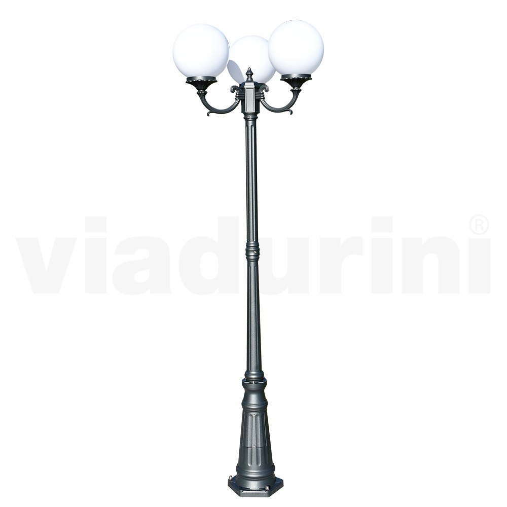 Tuinlamp gemaakt met antraciet afgewerkte gegoten aluminium structuur en opalen acryl bol diffuser, volledig gemaakt in Italië.