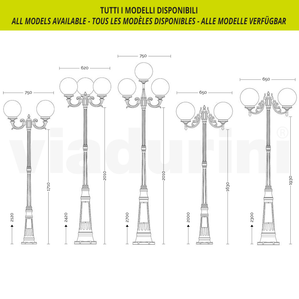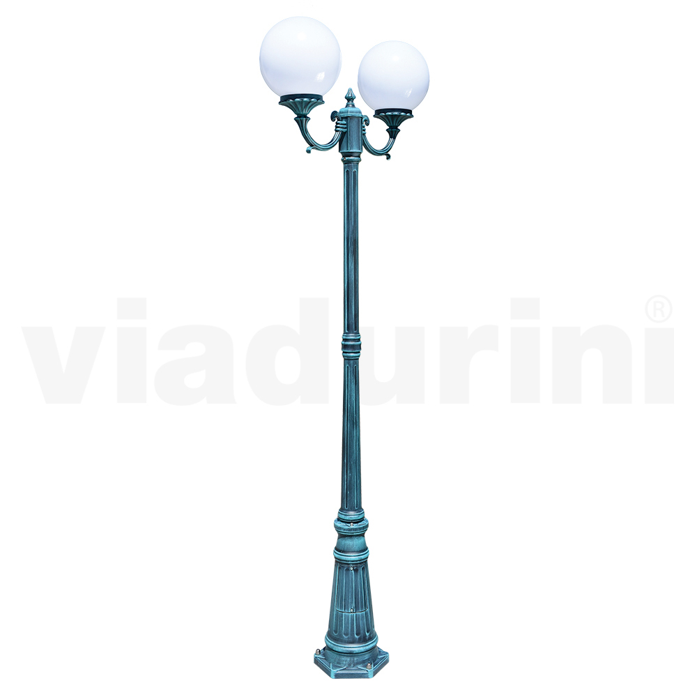 Tuinlamp gemaakt met een structuur van gegoten aluminium en een diffuser van opalen acrylbollen , volledig gemaakt in Italië.