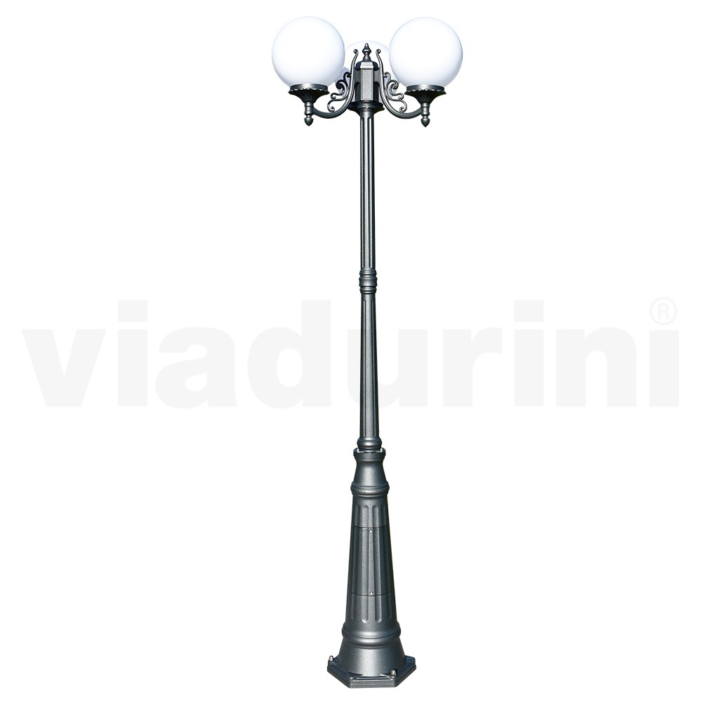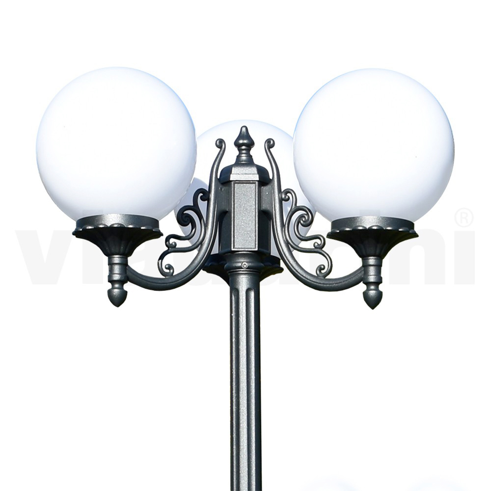 Tuinlamp gemaakt met een antraciet afgewerkte gegoten aluminium structuur en opalen acryl bol diffuser, volledig gemaakt in Italië.
