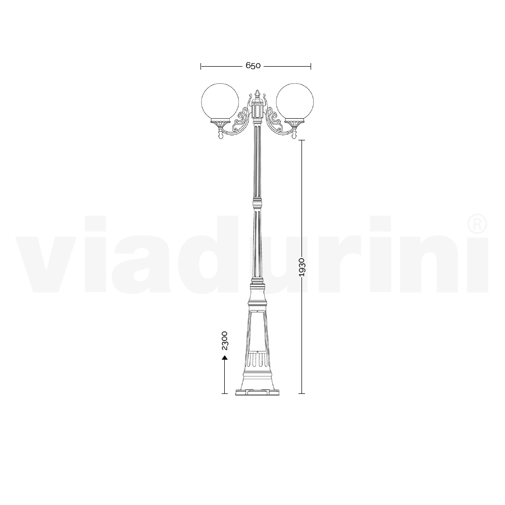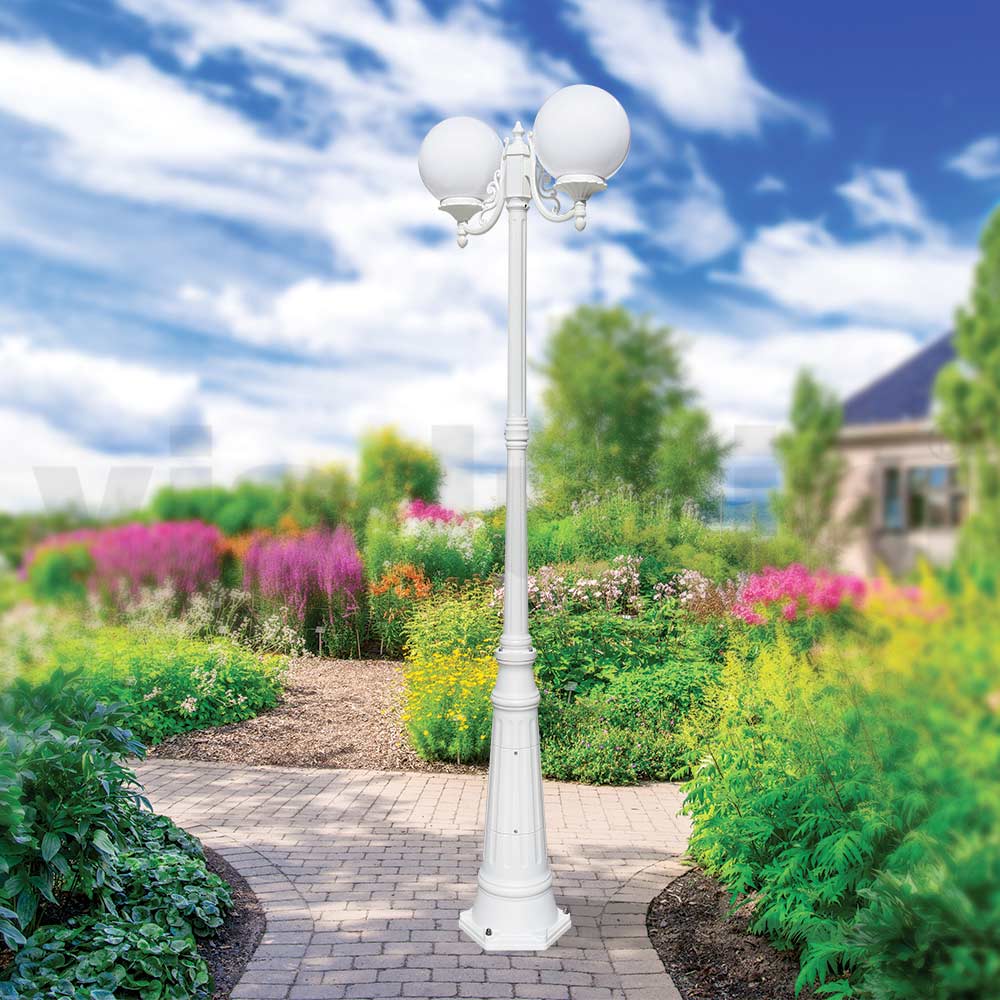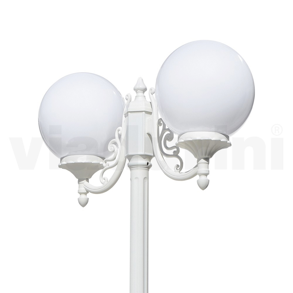 Tuinlamp gemaakt met een structuur van gegoten aluminium en een diffuser van opalen acrylbollen , volledig gemaakt in Italië.