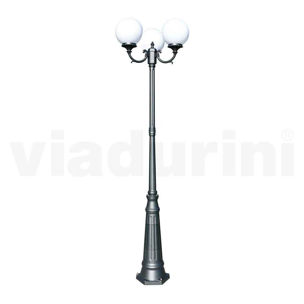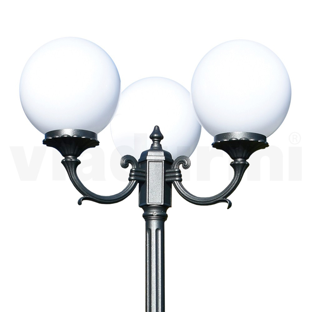 Tuinlamp gemaakt met een antraciet afgewerkte gegoten aluminium structuur en opalen acryl bol diffuser, volledig gemaakt in Italië.