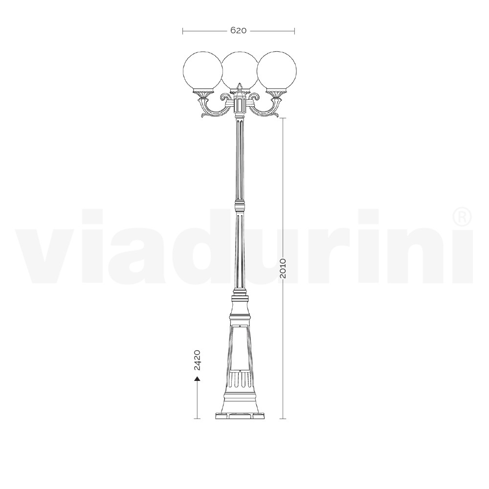 Buitenstraatlantaarn van gegoten aluminium met 3 acryl diffusers