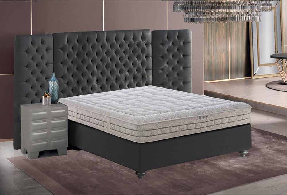 Dubbel matras van 25 cm hoog Ginseng geheugen met afneembare hoes en gewatteerde hoes, handgemaakt in Italië.