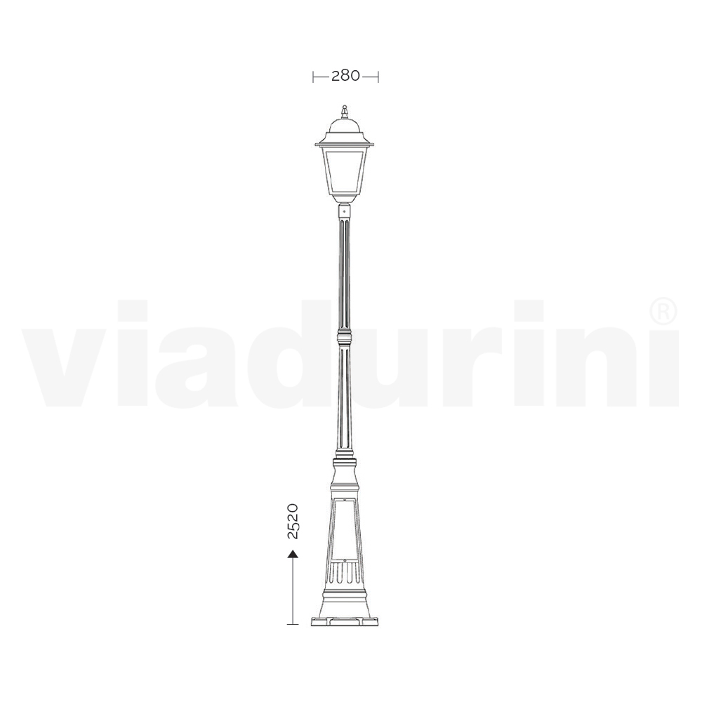 Voeg een vleugje klassieke gratie toe aan uw buitenruimte met deze straatlamp. Hij is gemaakt van robuust gegoten aluminium en valt op door zijn uitzonderlijke duurzaamheid en zijn vermogen om de elementen met elegantie te weerstaan. De afwerking verfraait elke tuin of oprit en verspreidt een visuele warmte die zowel uitnodigend als charmant is. De bovenste koepel en het glas komen samen om een optimale lichtverdeling te creëren, terwijl de bewerkte details het stuk een onderscheidend karakter en antieke charme geven. Of u hem nu langs een romantisch pad in de tuin plaatst of als welkomstpunt bij de ingang, deze lantaarnpaal is niet alleen een functioneel element, maar een waar symbool van stijl en kwaliteit.