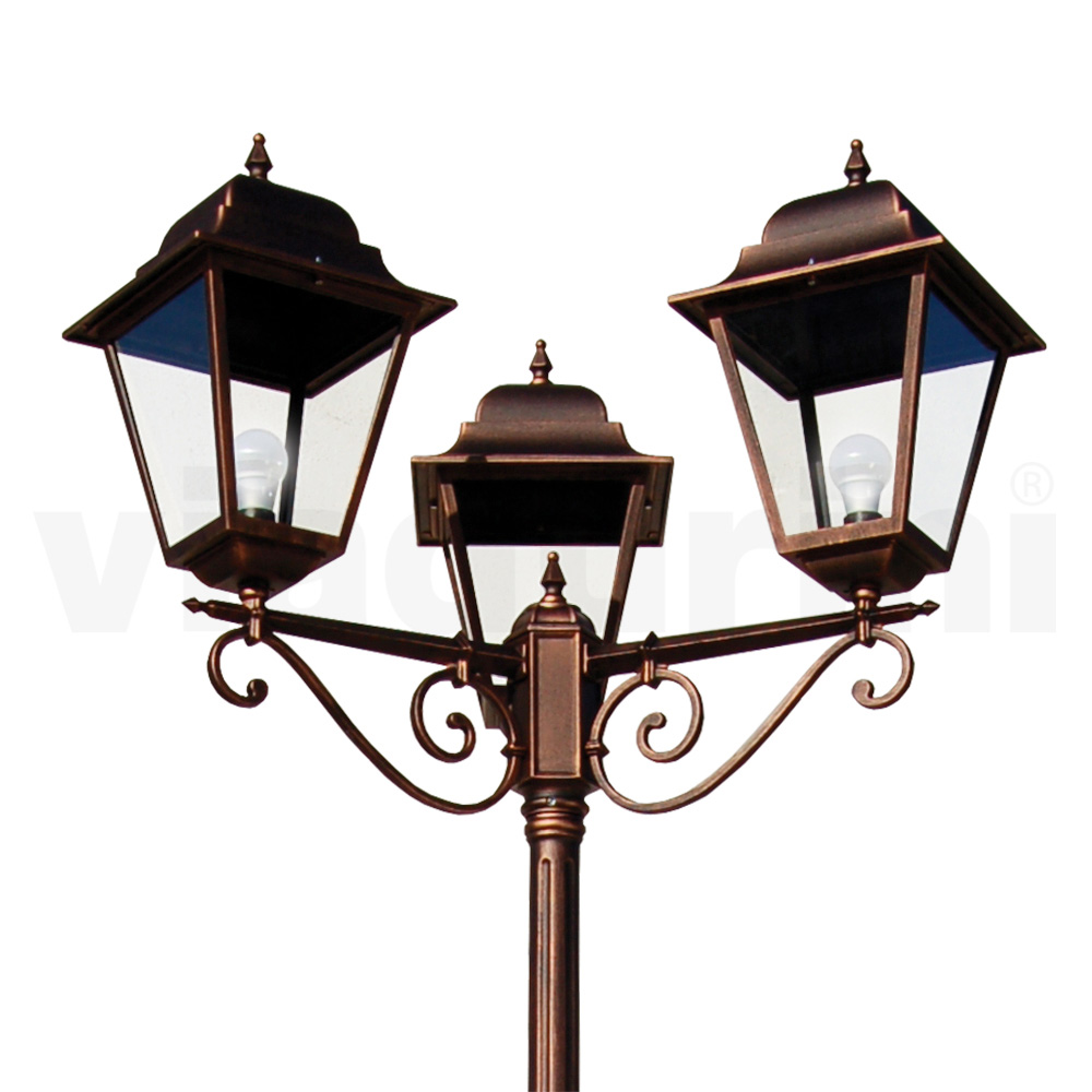 Voeg een vleugje klassieke gratie toe aan uw buitenruimte met deze straatlamp. Hij is gemaakt van robuust gegoten aluminium en valt op door zijn uitzonderlijke duurzaamheid en zijn vermogen om de elementen met elegantie te weerstaan. De afwerking verfraait elke tuin of oprit en verspreidt een visuele warmte die zowel uitnodigend als charmant is. De 3 bovenste koepels en het glas komen samen om een optimale lichtverdeling te creëren, terwijl de bewerkte details het stuk een onderscheidend karakter en antieke charme geven. Of u hem nu langs een romantisch pad in de tuin plaatst of als welkomstpunt bij de ingang, deze lantaarnpaal is niet alleen een functioneel element, maar een waar symbool van stijl en kwaliteit.