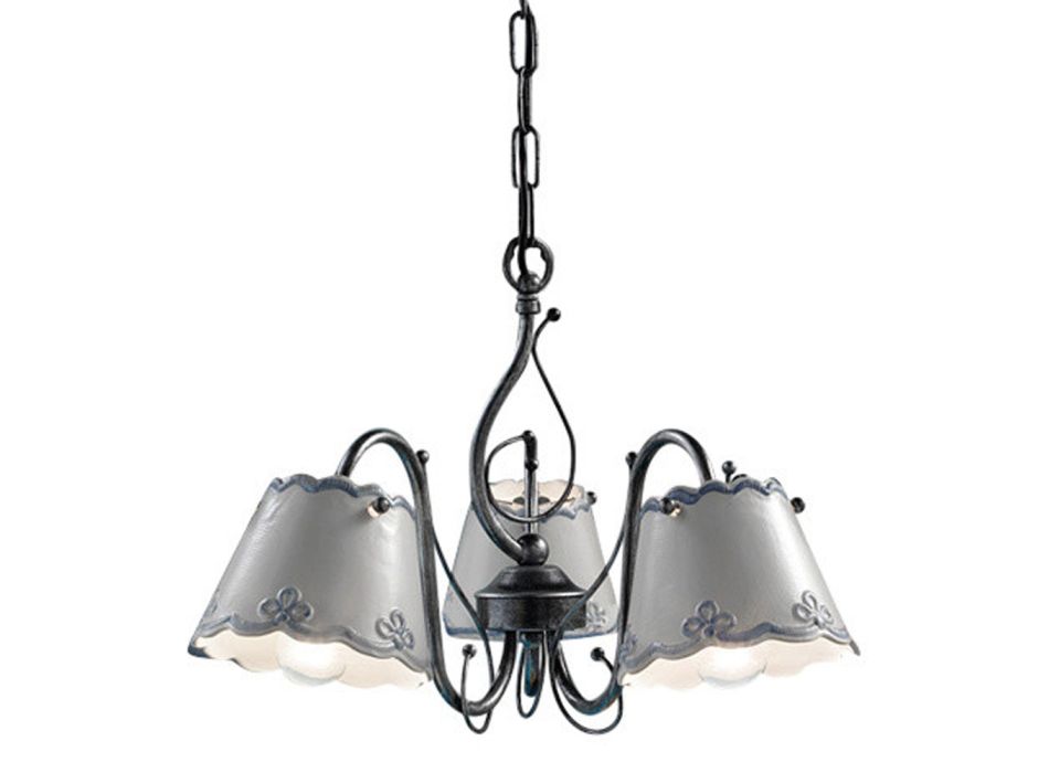 Woonkamer kroonluchter 3 of 5 lampen handgemaakt in metaal en keramiek met borduureffect, gemaakt in Italië door Ferroluce.