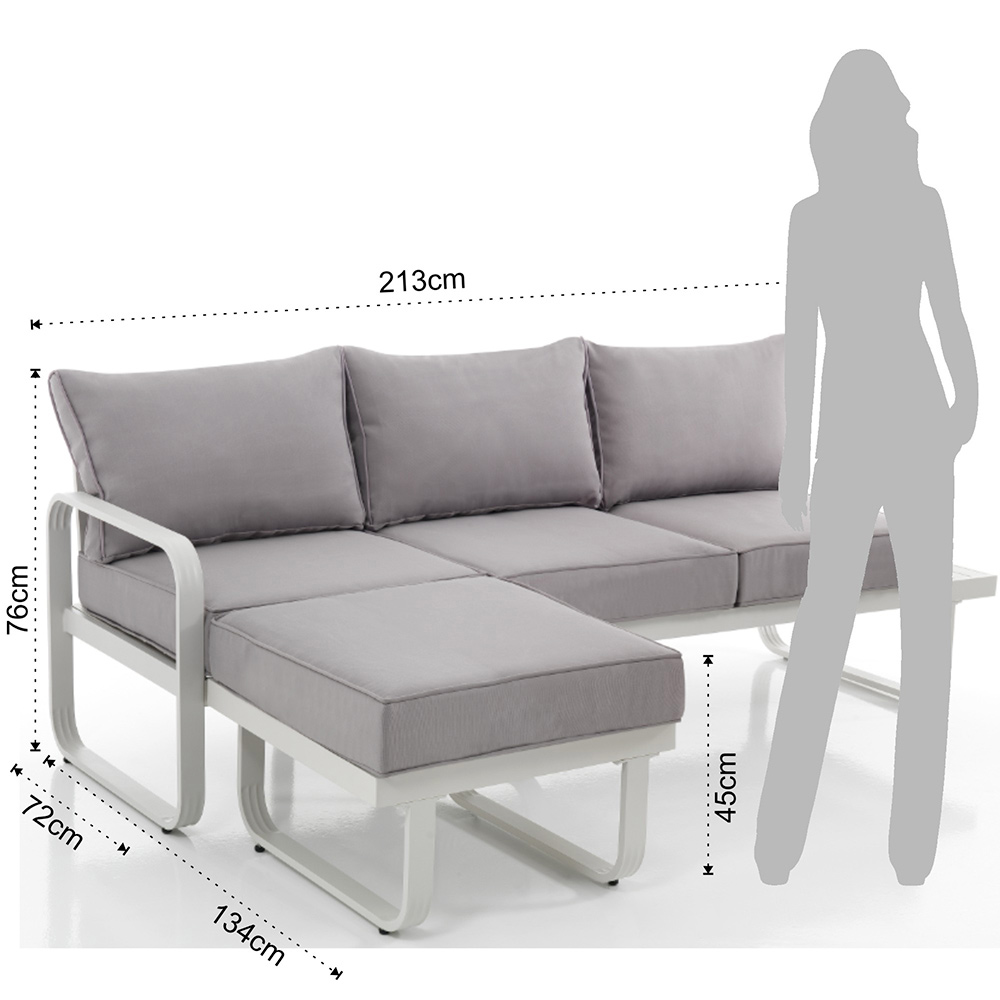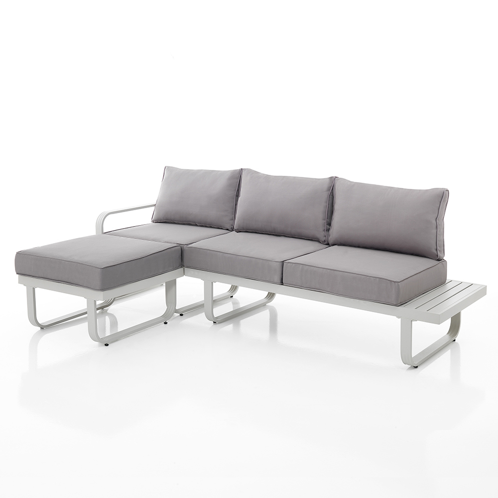 Deze bank is het embleem van minimalistisch comfort voor buitenruimtes . De strakke lijnen en aluminium structuur bieden een moderne en boeiende esthetiek die zich met veelzijdigheid aanpast aan zowel moderne tuinen als terrassen in meer klassieke stijl.