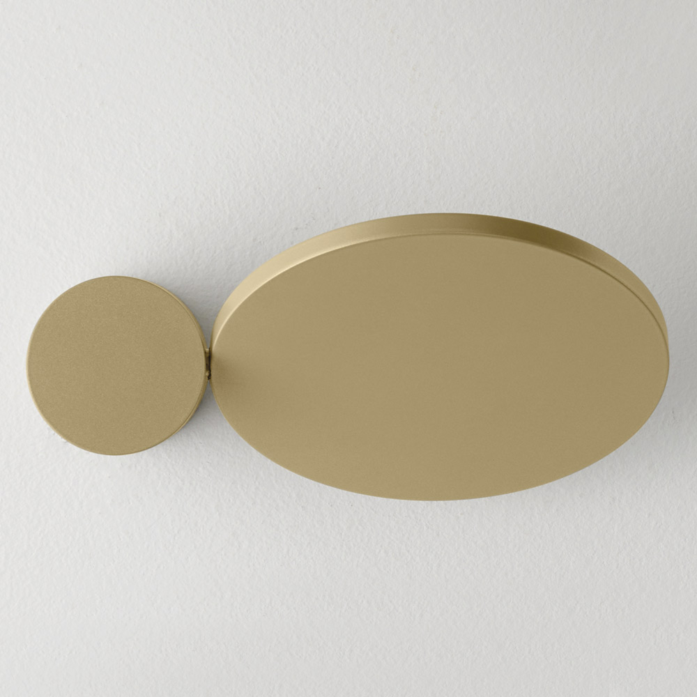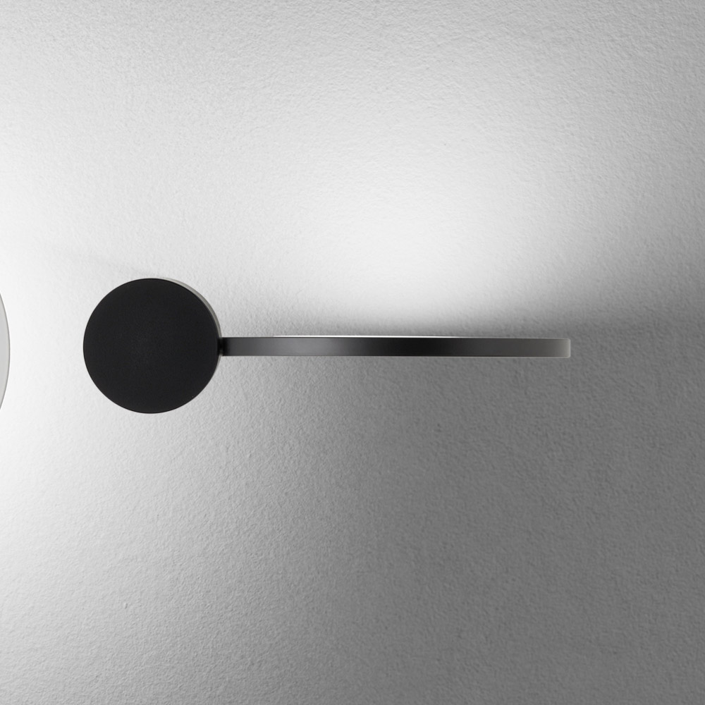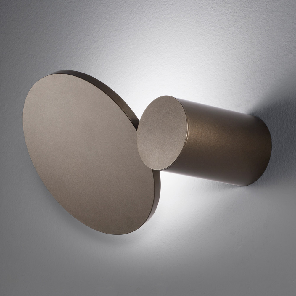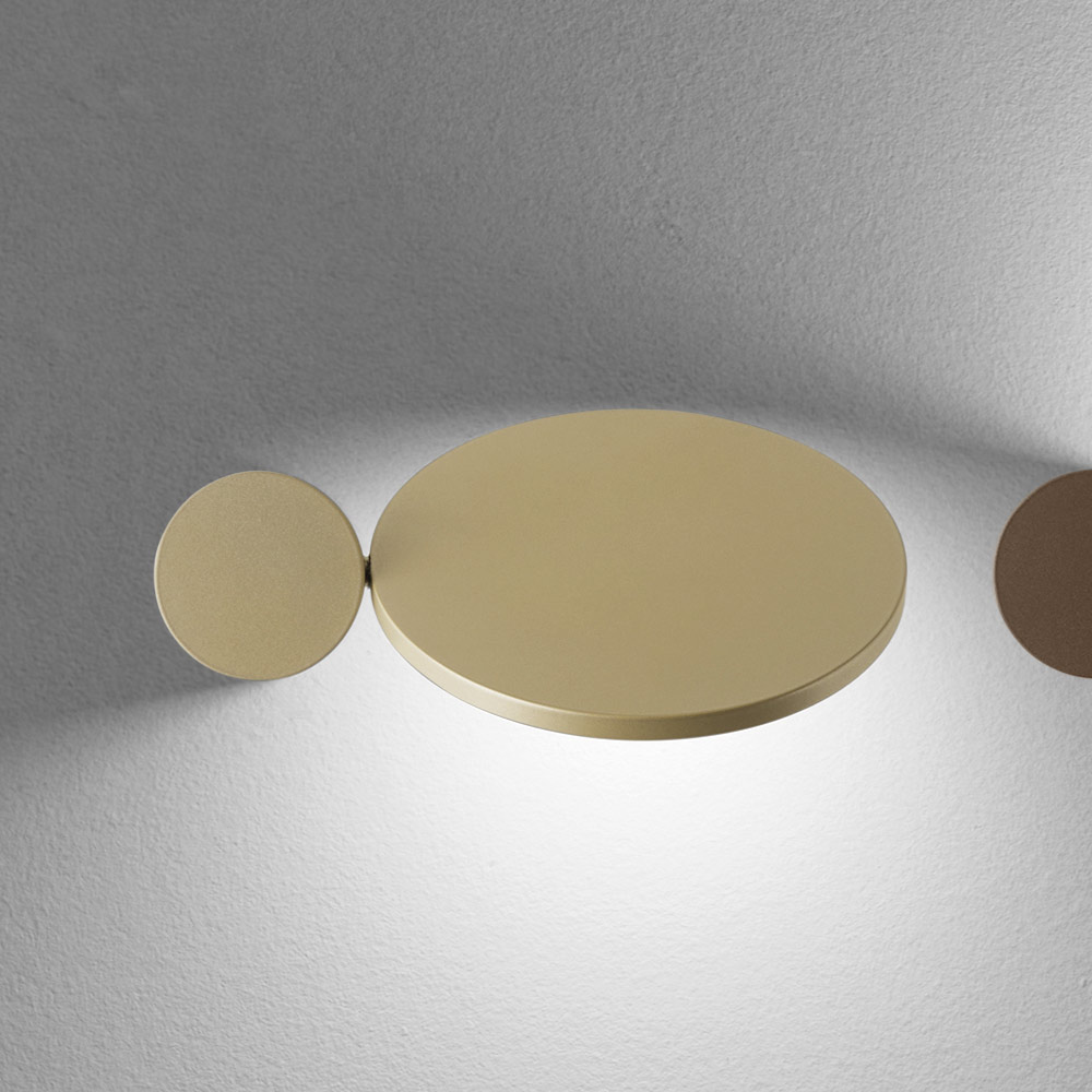 Deze wandlamp is een waar lichtgevend kunstwerk , dat grafisch design en decoratieve functionaliteit in één hand combineert. Hij is opgebouwd uit essentiële geometrische vormen en speelt met overlappende schijven en ovalen die, wanneer ingeschakeld, een zacht en dramatisch lichteffect op de muur creëren.
