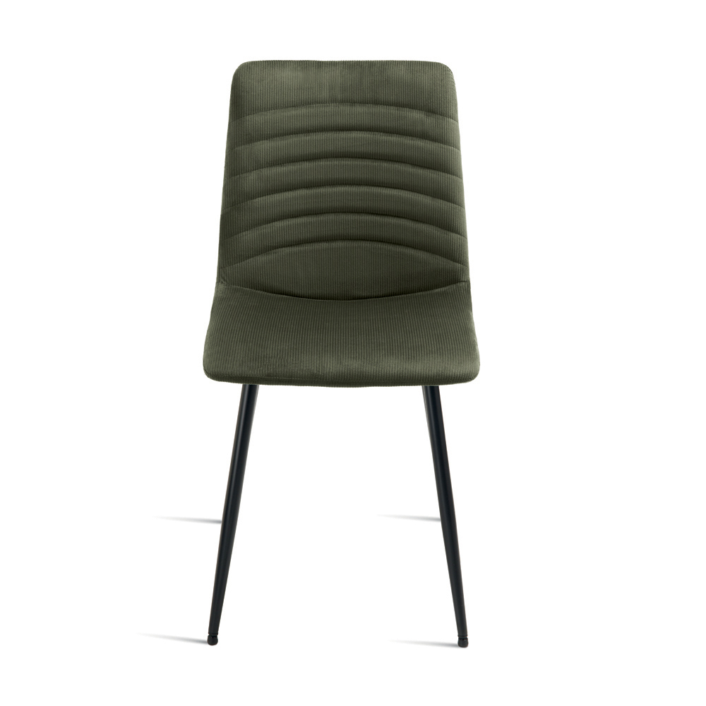 Een elegante set van 4 gestoffeerde stoelen met een eigentijds design, perfect voor een stijlvolle inrichting van uw eetkamer , woonkamer of andere ruimte. De geribbelde stof zorgt voor een rijke, aangename textuur en geeft de zitting een verfijnde, gestructureerde uitstraling.
