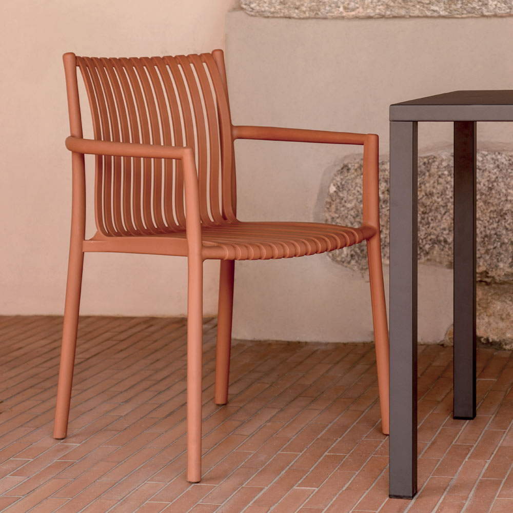 Deze tuinstoel combineert eigentijds design, lichtheid en duurzaamheid en biedt een veelzijdige en functionele oplossing voor het stijlvol decoreren van elke buitenruimte. Gemaakt van polypropyleen met toegevoegde glasvezel , garandeert hij een solide en duurzame constructie, perfect voor dagelijks gebruik binnen en buiten.