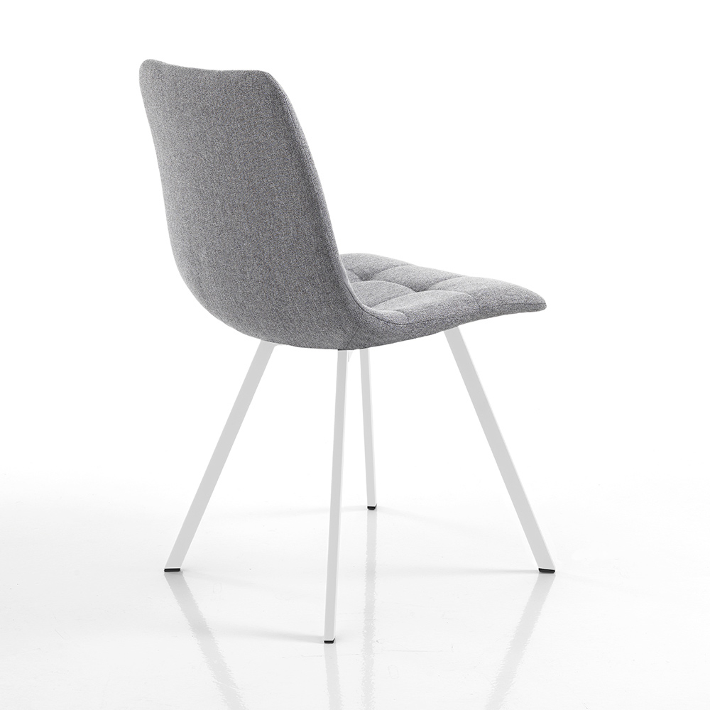 De stalen poten voegen een vleugje moderniteit toe en zorgen voor stevige stabiliteit, hun slanke maar toch duurzame ontwerp creëert een mooi contrast met de zachte zitstof. Deze stoel is ideaal voor huishoudelijke omgevingen zoals de eetkamer of thuiskantoor, maar ook voor commerciële ruimtes zoals kantoren of wachtkamers.