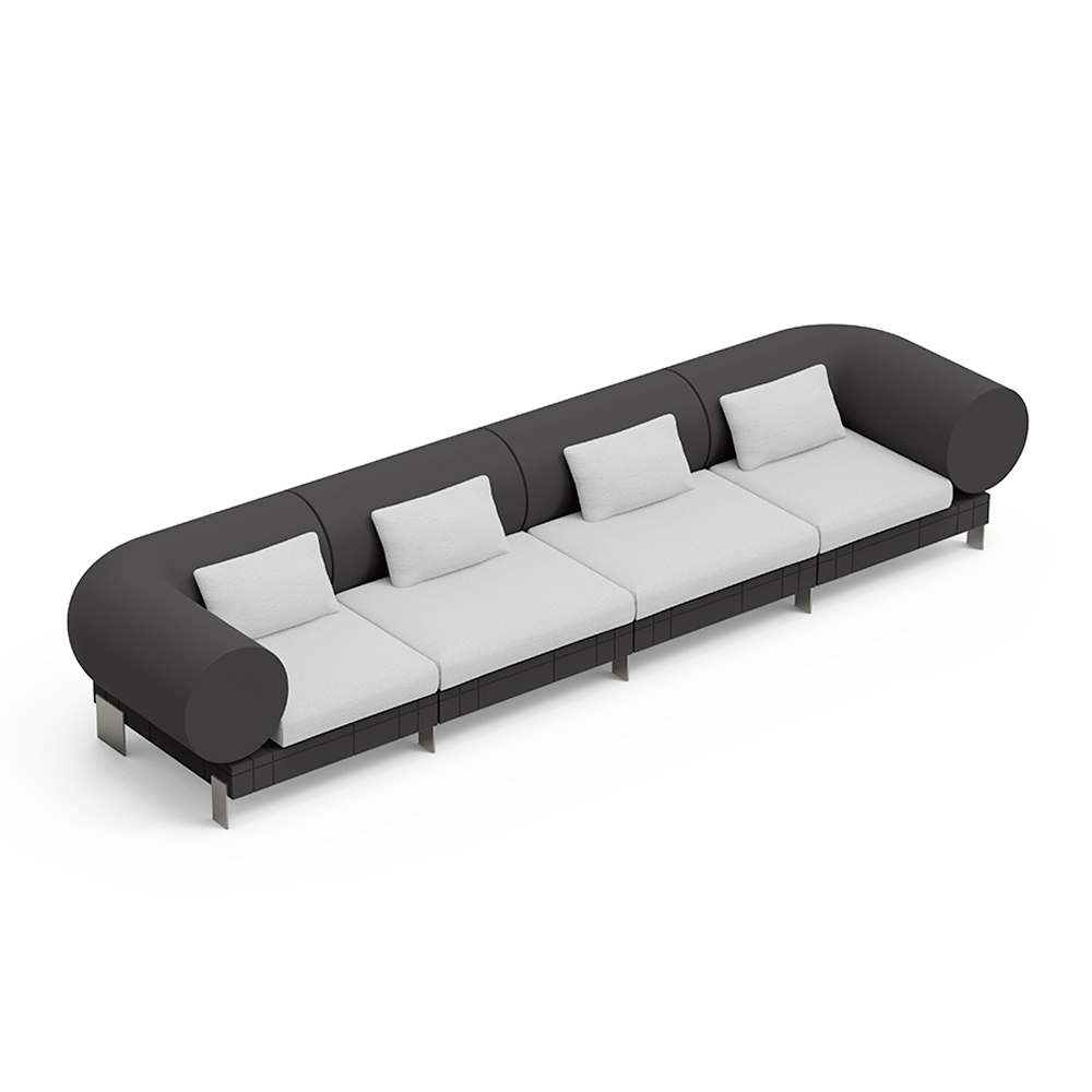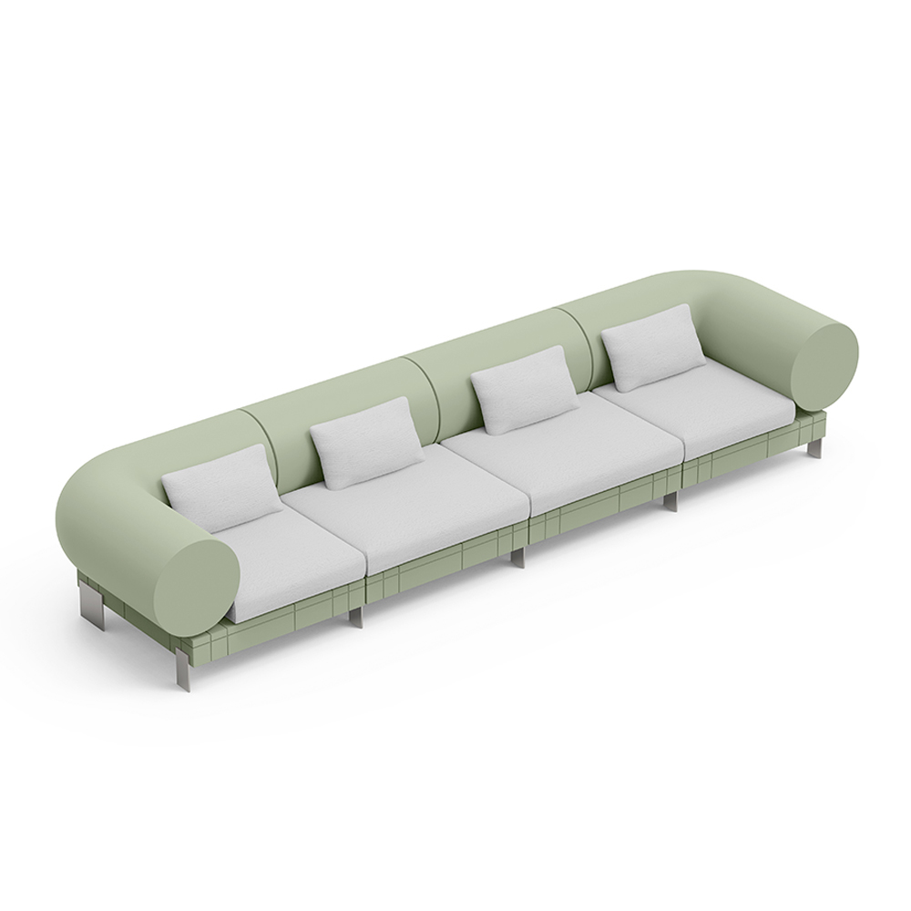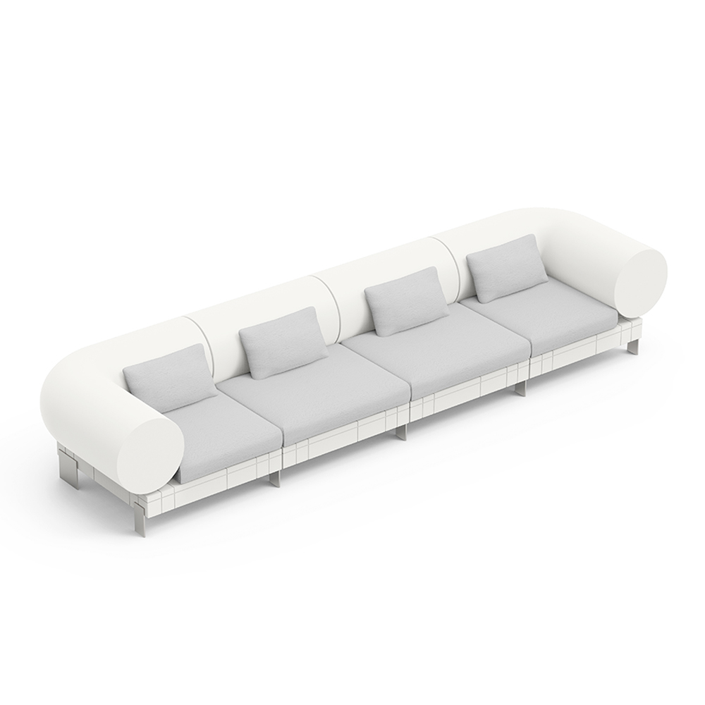 De bank wordt ondersteund door een dunne metalen basis die niet alleen voor stabiliteit zorgt, maar ook een elegant en minimalistisch accent aan het hele ontwerp toevoegt. Hoogwaardige materialen zorgen voor duurzaamheid en comfort , waardoor het perfect is voor dagelijkse ontspanning.