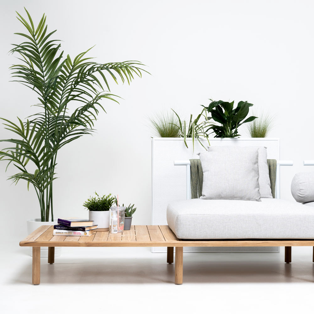 teakhout uit gecontroleerde en duurzame bossen (INDONESIANLEGALWOOD). Teak is geclassificeerd als het meest waardevolle hout dat beschikbaar is voor buitenmeubilair. Het is extreem duurzaam, stabiel en bestand tegen weersinvloeden, schimmels, parasieten en insecten. Het bevat veel natuurlijke oliën die het resistent maken en de absorptie van vocht beperken. Na verloop van tijd hebben teakhouten meubelen die worden blootgesteld aan de zon, regen, vochtigheid enz. de neiging om zilvergrijs van kleur te worden: dit is te wijten aan een oxidatieproces van het oppervlak dat het hout op natuurlijke wijze beschermt. Dit proces is puur esthetisch en tast de structuur of kwaliteit van het hout niet aan. Het verschijnen van olie op het oppervlak van teakhouten meubelen is een natuurlijk proces: de olie kan tijdens de eerste maanden naar buiten komen, meer of minder constant afhankelijk van de omgeving waarin de meubelen staan. De natuurlijke oliën die in teak aanwezig zijn, maken het tot het beste hout voor buitenmeubelen.
