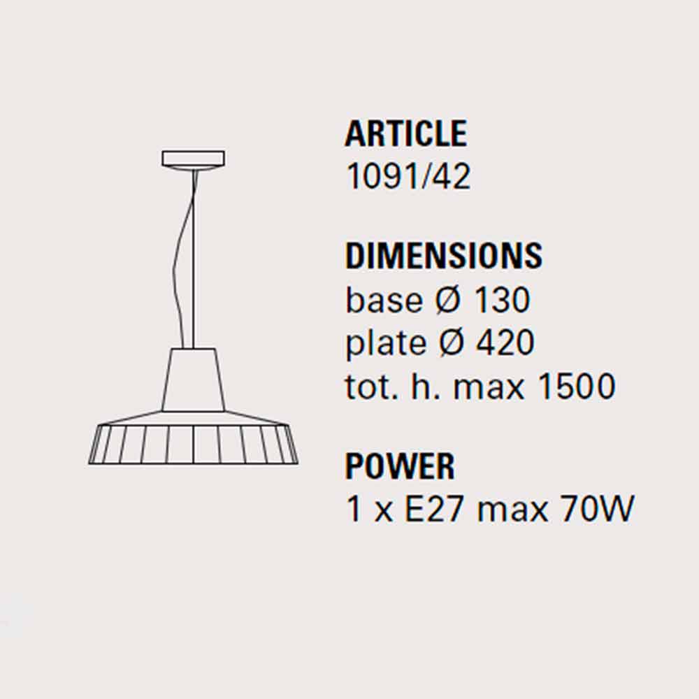 Afmetingen : voet Ø130 x plaat Ø420 x H tot 1500 mm