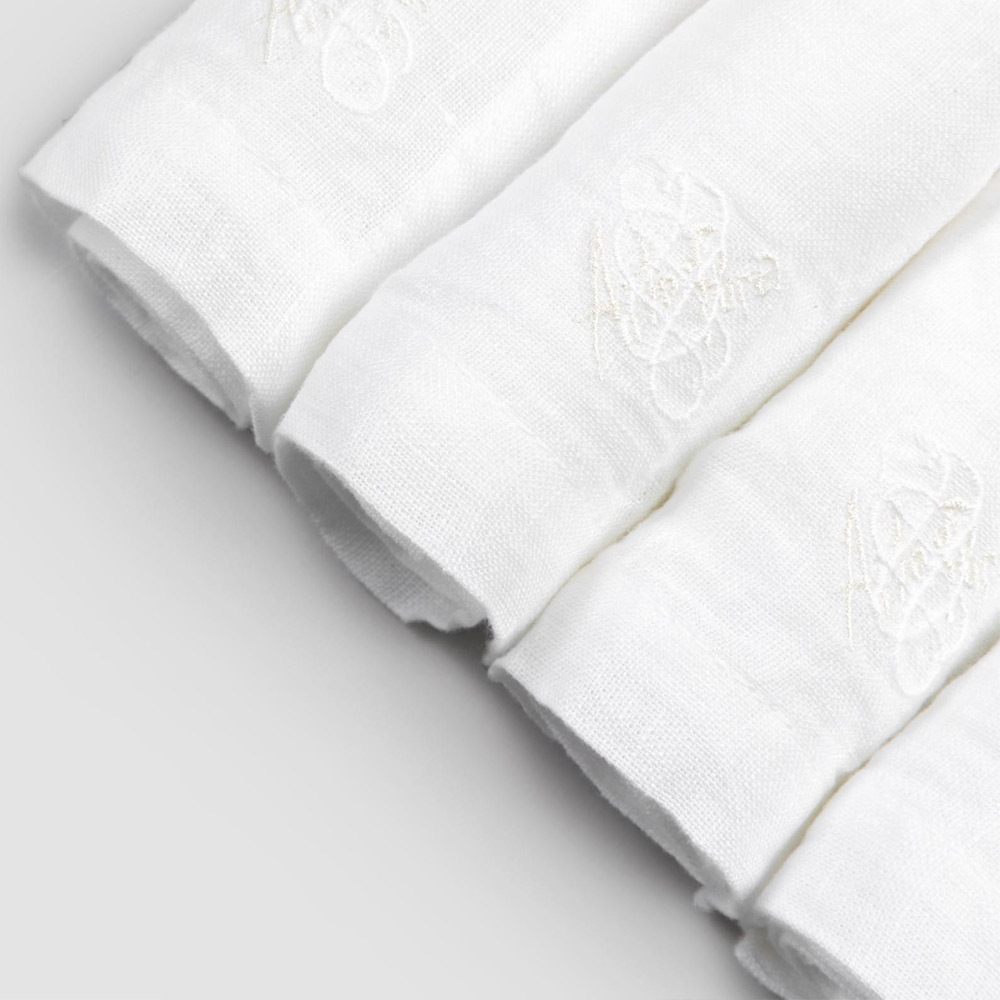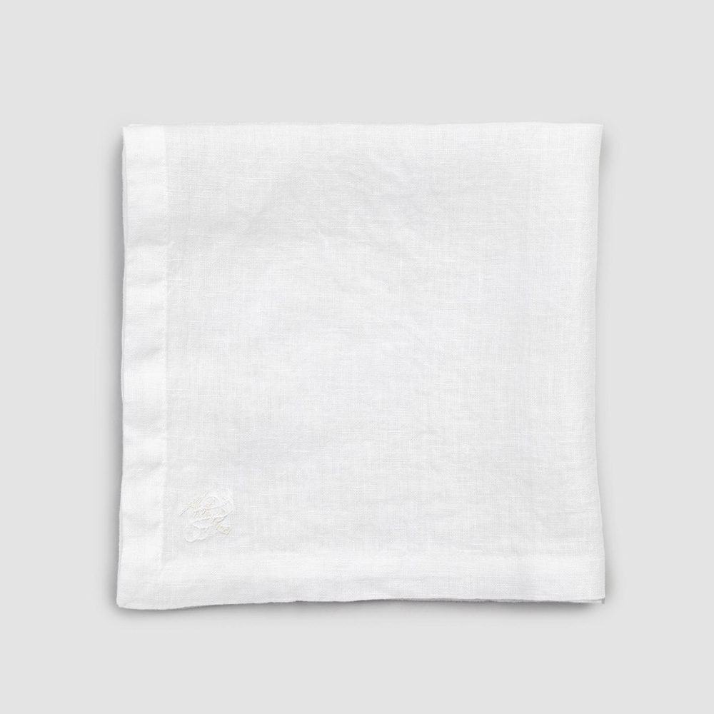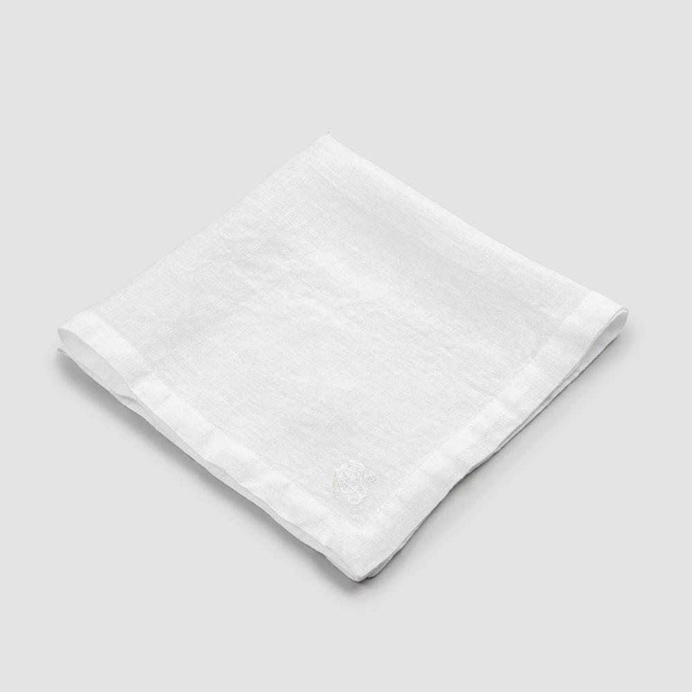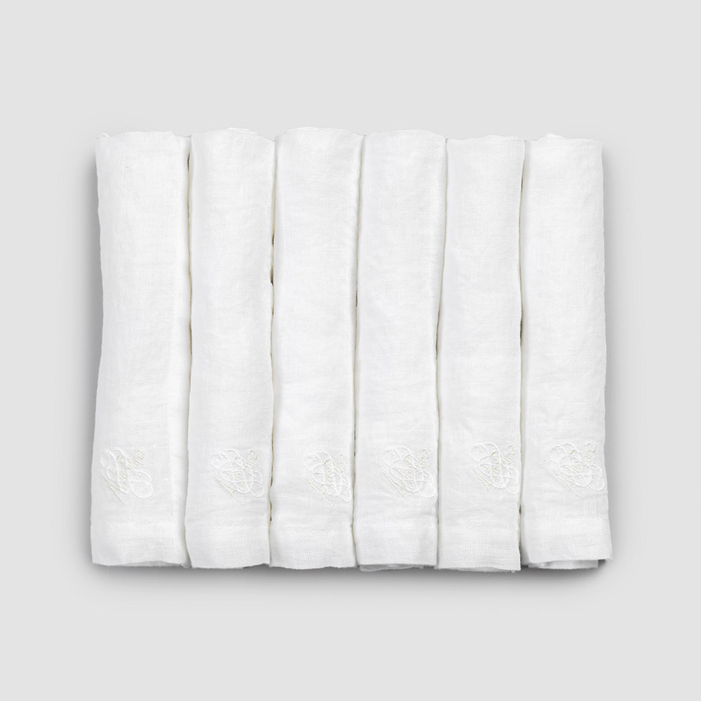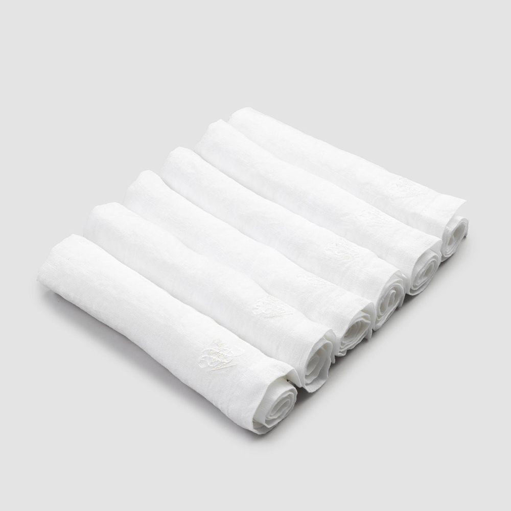 6 Witte lichte linnen servetten met vouwrand, luxe en elegant ontwerp gemaakt in Italië.