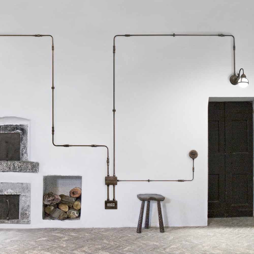 Dit zijn schakelaars, fittingen, aansluitdozen, leidingen om de elektrische kabel door te voeren, te combineren met de lampen en wandlampen van de Aldo Bernardi collectie.