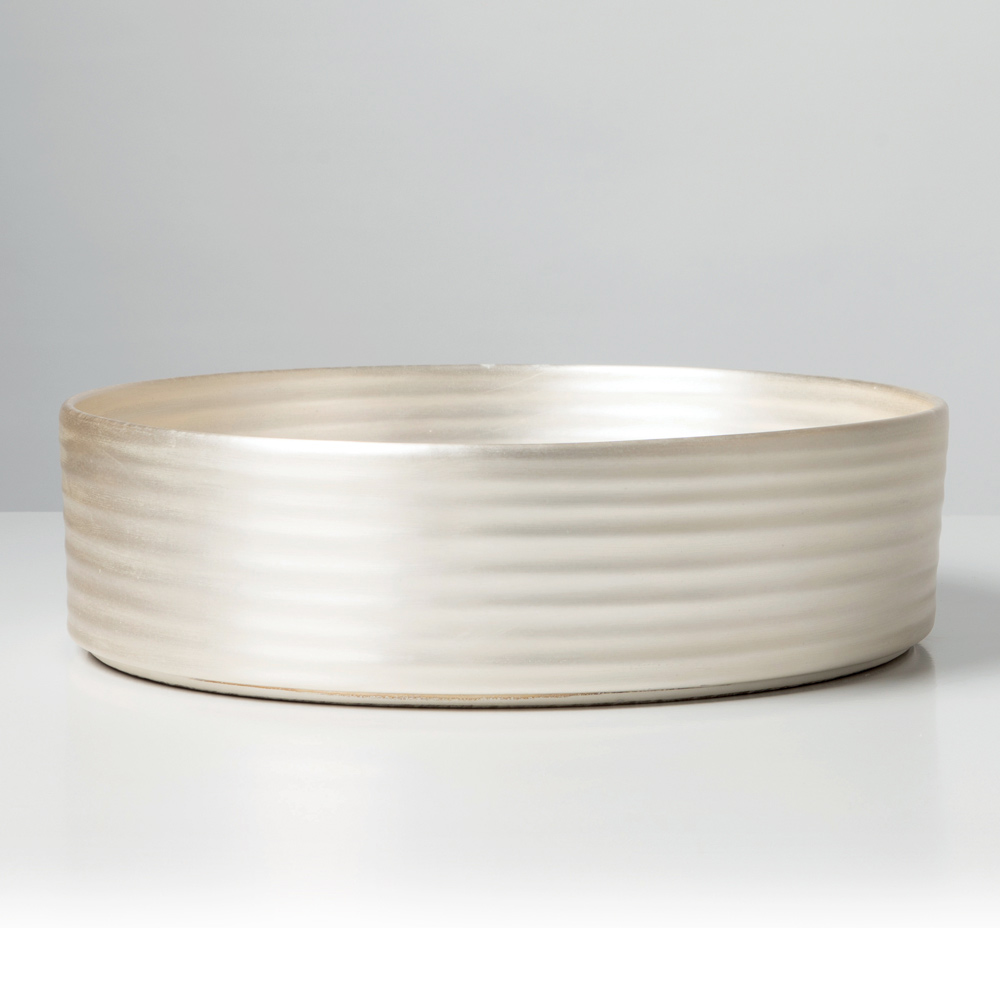 De wastafel is gemaakt van handgedraaid porselein en vormt een perfecte combinatie van formeel onderzoek en ambachtelijk vakmanschap. De golvende oppervlakken spelen met het licht en creëren zachte, continue reflecties die het materiaal een vloeiende en elegante uitstraling geven.