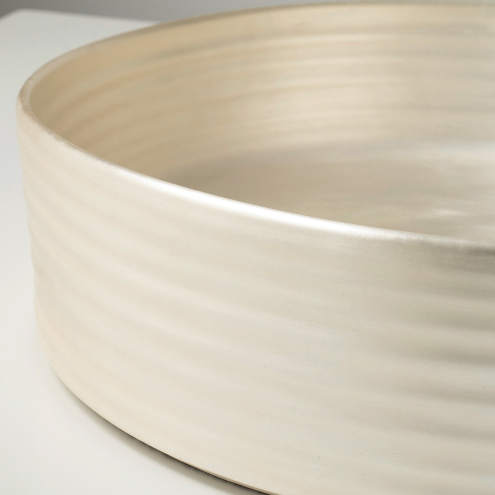 De handgemaakte afwerking geeft de wastafel een verfijnde, eigentijdse textuur, terwijl de naadloze overgang tussen binnen- en buitenkant de puurheid van het volume en de balans van de proporties benadrukt. Deze wastafel is ontworpen voor moderne, minimalistische en luxe badkamers, waar de wastafel het middelpunt van de ruimte vormt.