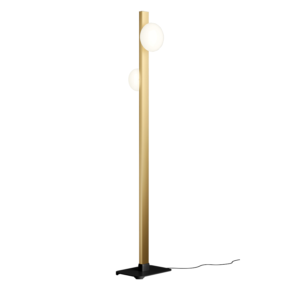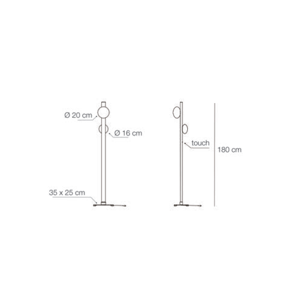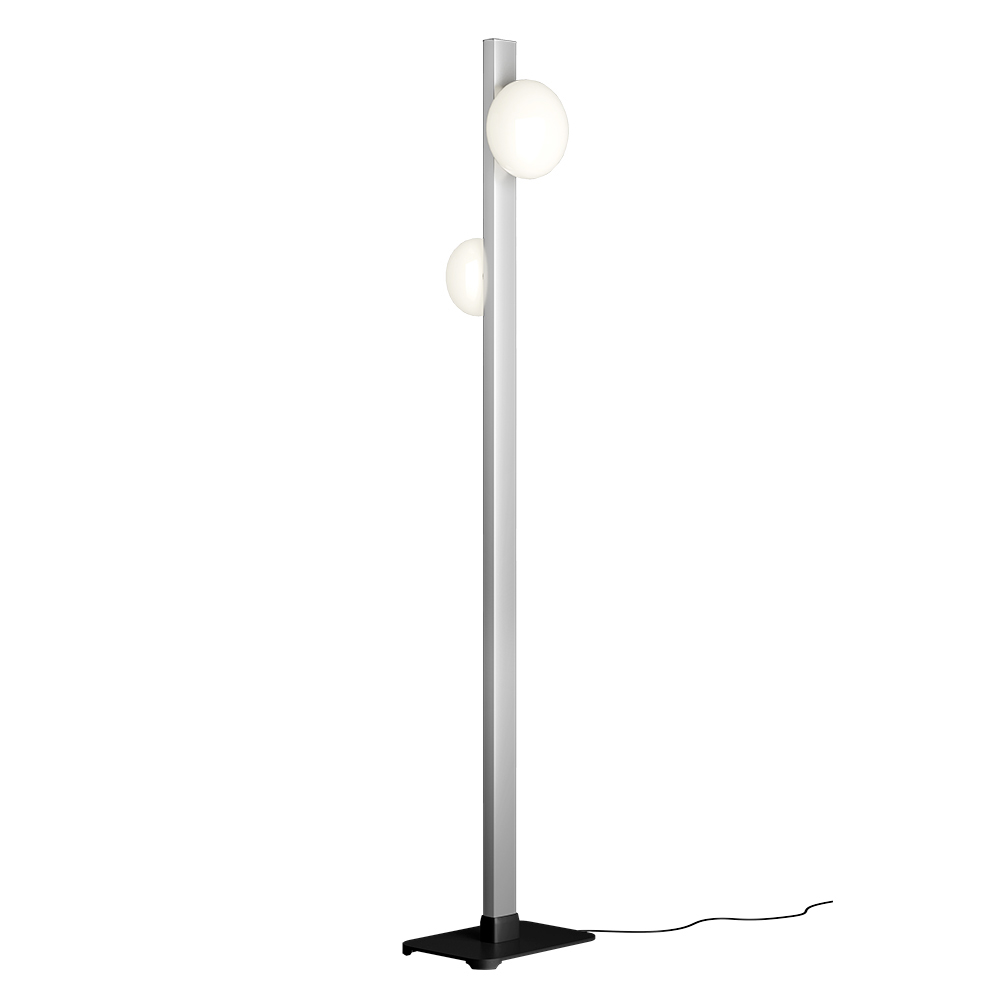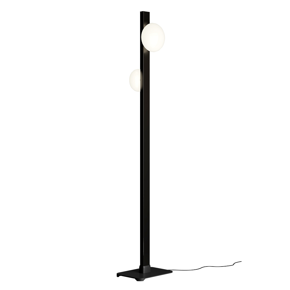 Deze staande lamp is een perfecte balans tussen sculpturaal design en functionele elegantie , ideaal om elke ruimte te verfraaien met een moderne en verfijnde stijl. De slanke, geometrische verticale structuur herbergt twee bolvormige diffusers van opaalglas , die in perfecte balans lijken te zweven en een zacht, omhullend licht verspreiden.