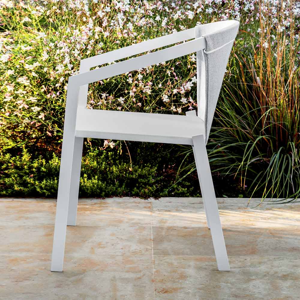 Stapelbare buitenstoel in aluminium, textileen en stoffen kussen, hoge kwaliteit made in Italy, 4 stuks.