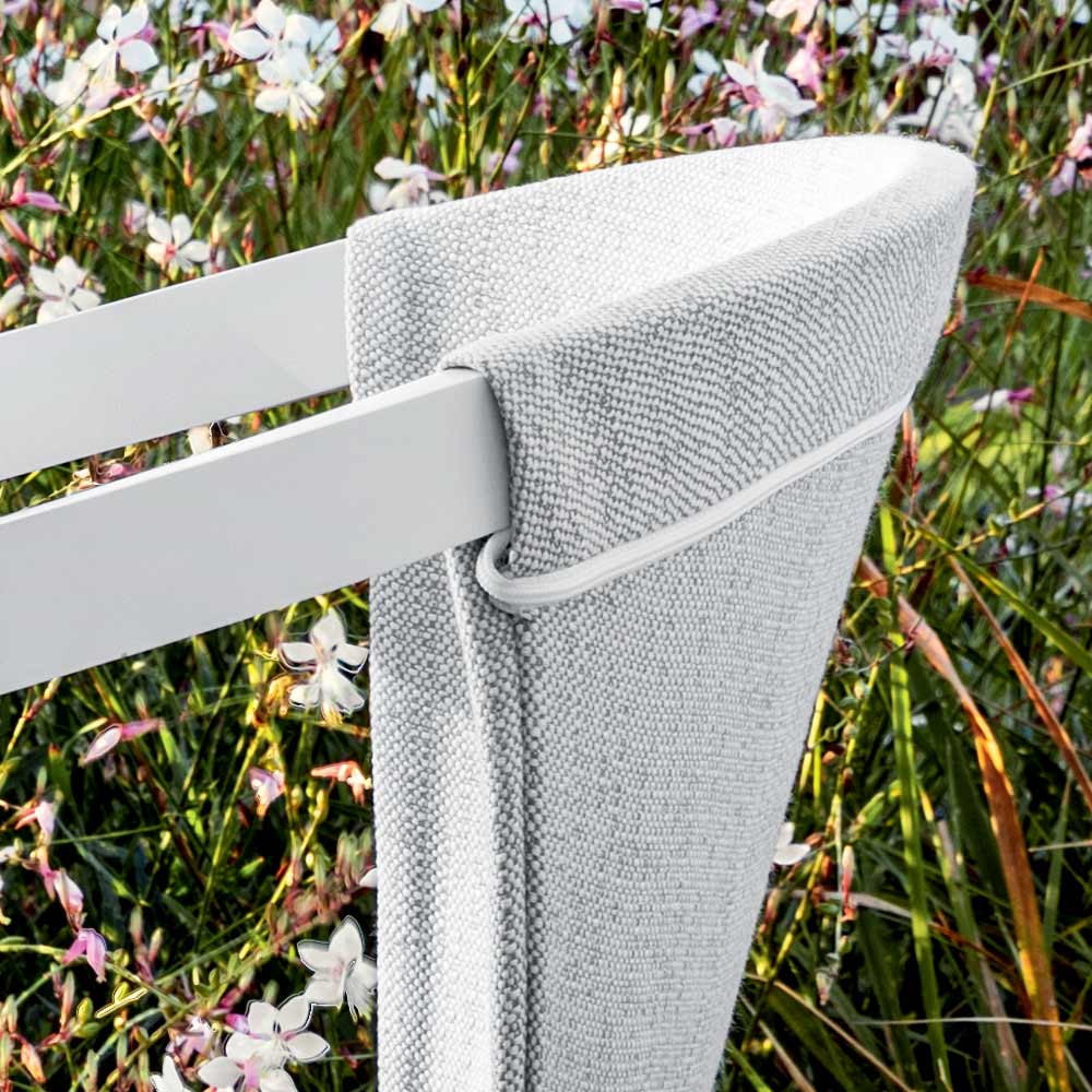 Het kan ook worden gekocht met het uitneembare kussen in waterafstotende stof in combinatie met de rugleuning. De vulling is van polyurethaanschuim omsloten door een waterdicht maar ademend membraan.