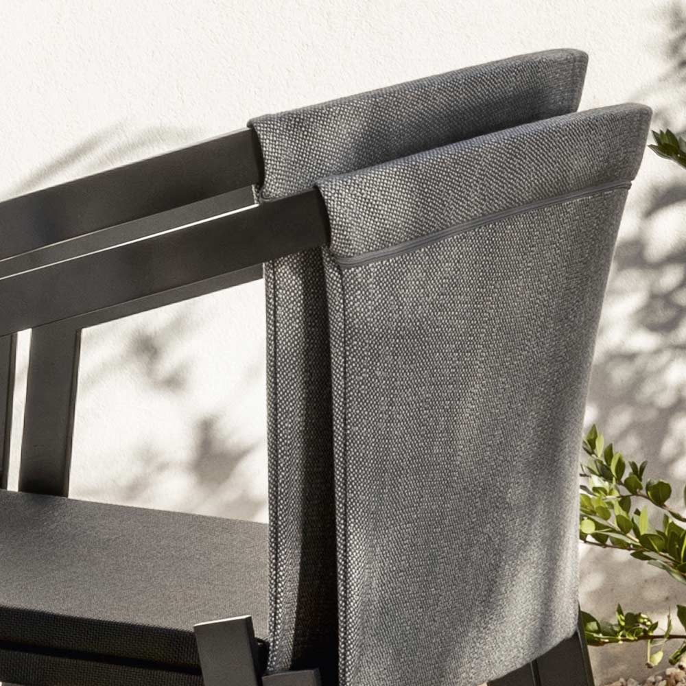 textileen en de rugleuning van waterafstotende Sunbrella-stof.