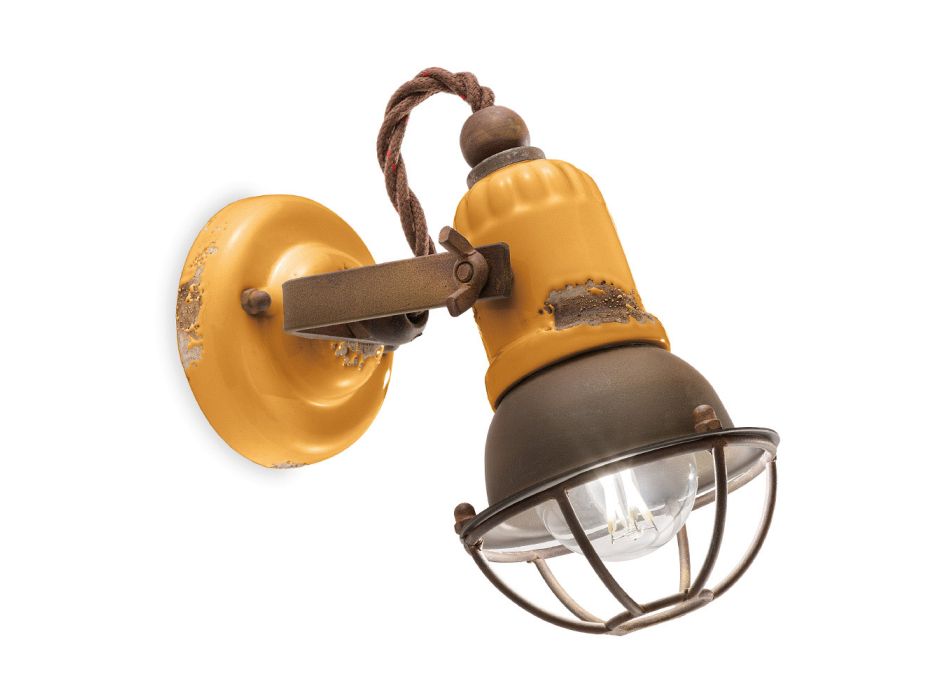 Handgemaakte spot wandlamp in keramiek en ijzer industrieel design verschillende afwerkingen gemaakt in Italië door Ferroluce.