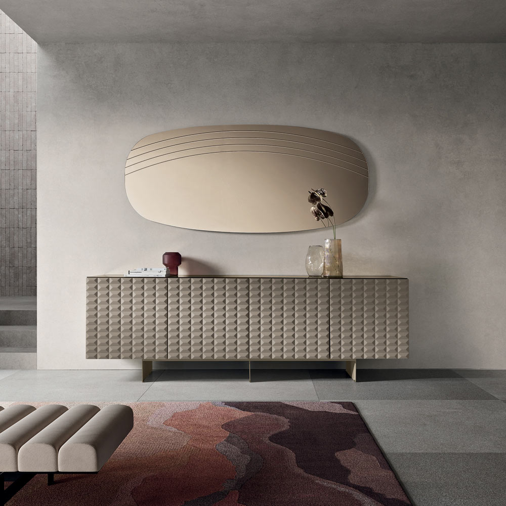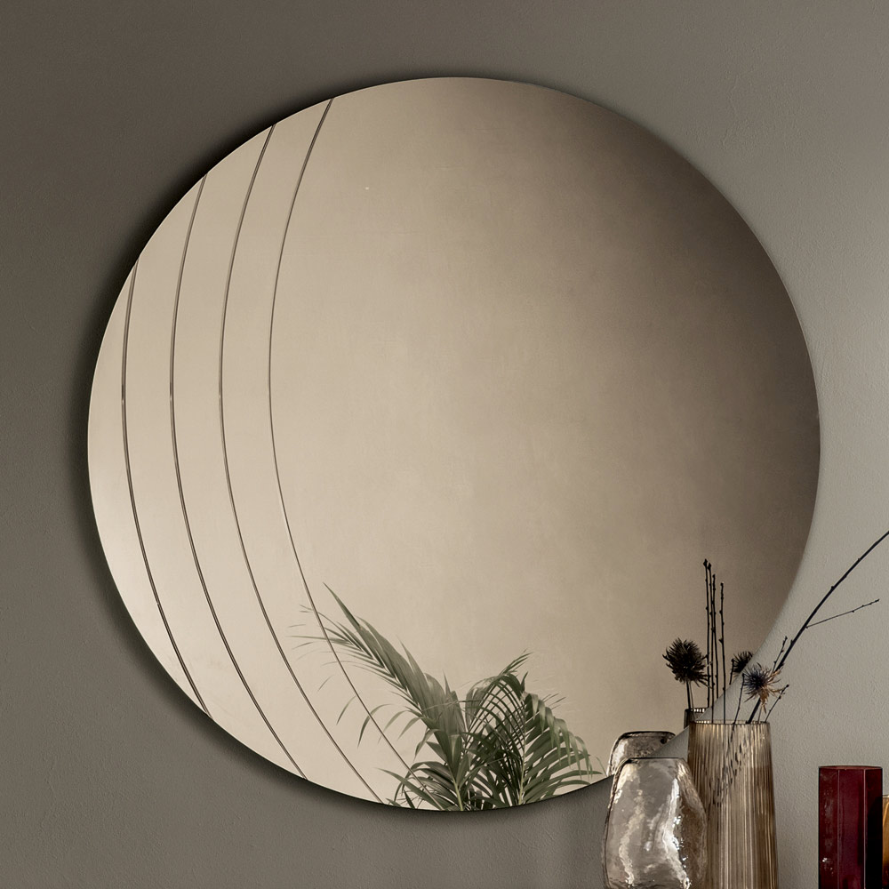 Een elegante wandspiegel, ontworpen in Italië , ideaal om ruimtes zoals de hal , woonkamer of slaapkamer te verfraaien. Het eigentijdse ontwerp kenmerkt zich door zachte, verfijnde lijnen, waardoor dit accessoire een decoratief element is dat de muur op subtiele en elegante wijze kan verfraaien.