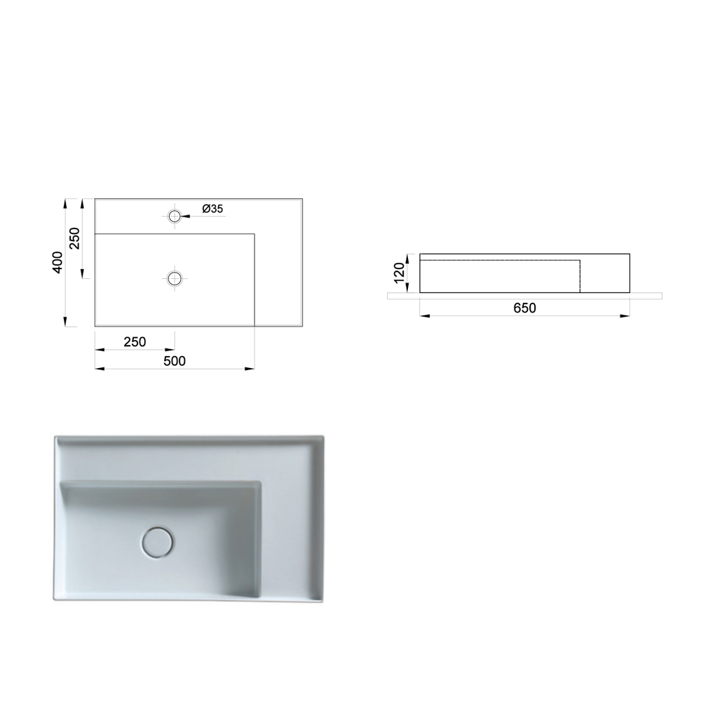 Moderne stijl mat zwarte keramische wastafel, verkrijgbaar zonder kraangat.