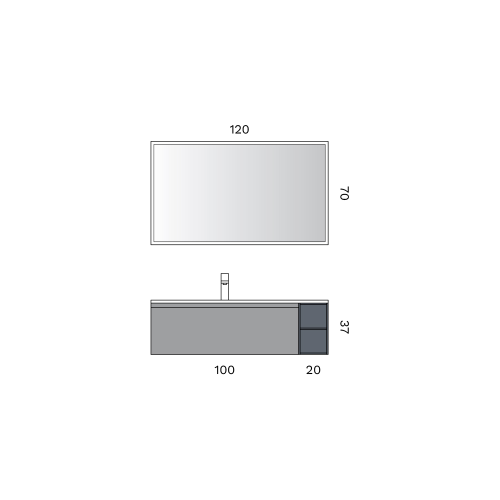 De compositie wordt ge completeerd door de LED-spiegel met achtergrondverlichting , ontworpen om een gelijkmatig en omhullend licht te bieden, perfect om de badkamerruimte te verfraaien en te zorgen voor functionele en elegante verlichting.