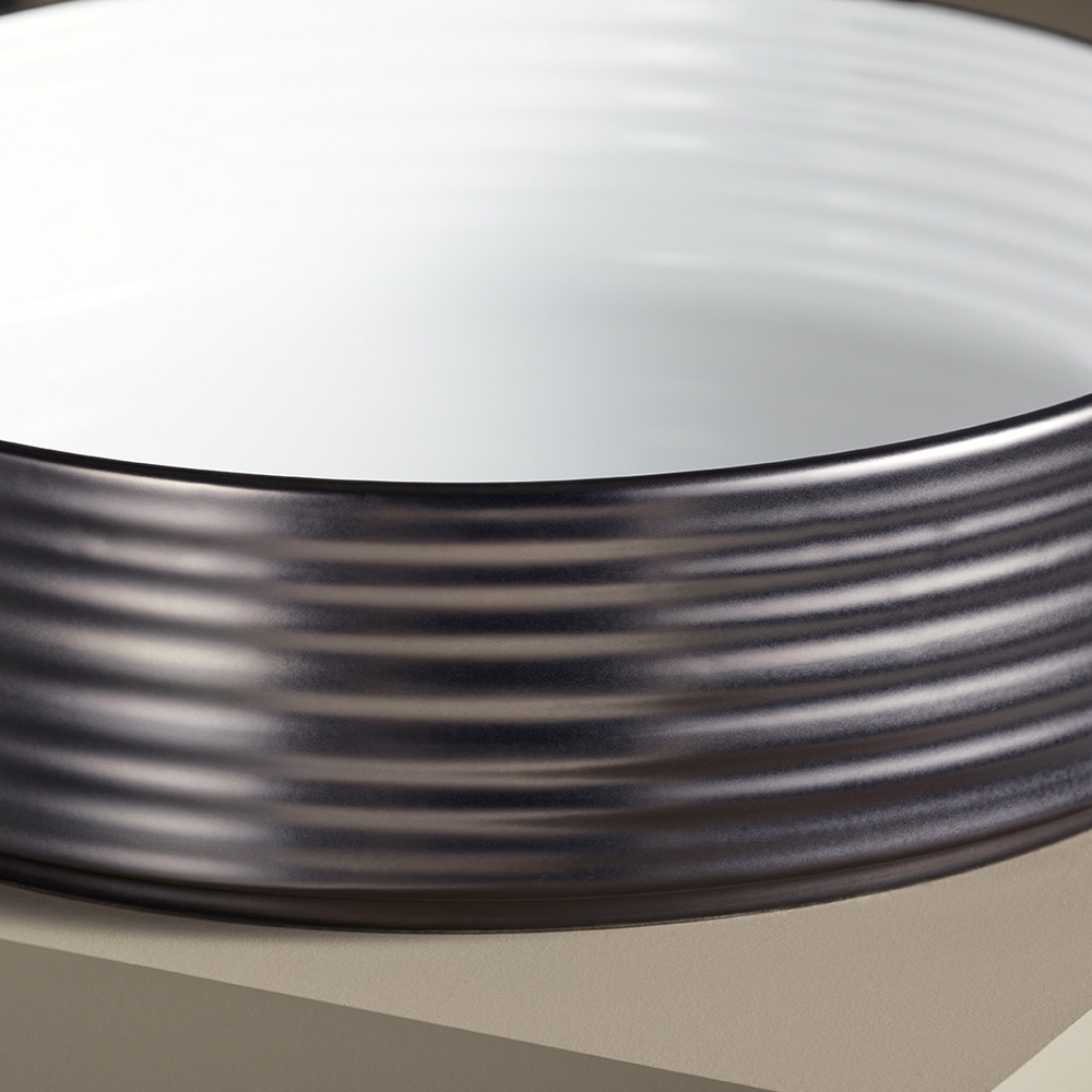 - Glanzend wit interieur, mat gun metal zwarte buitenkant