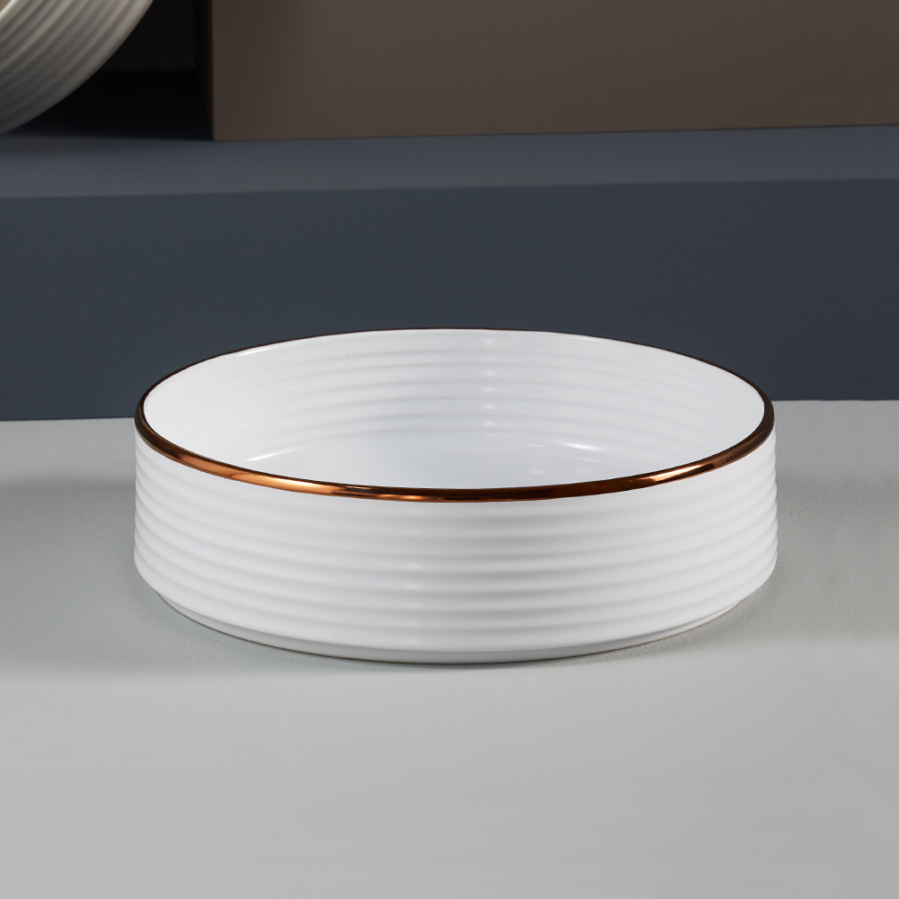 - Glanzend wit interieur, glanzend roségouden buitenkant