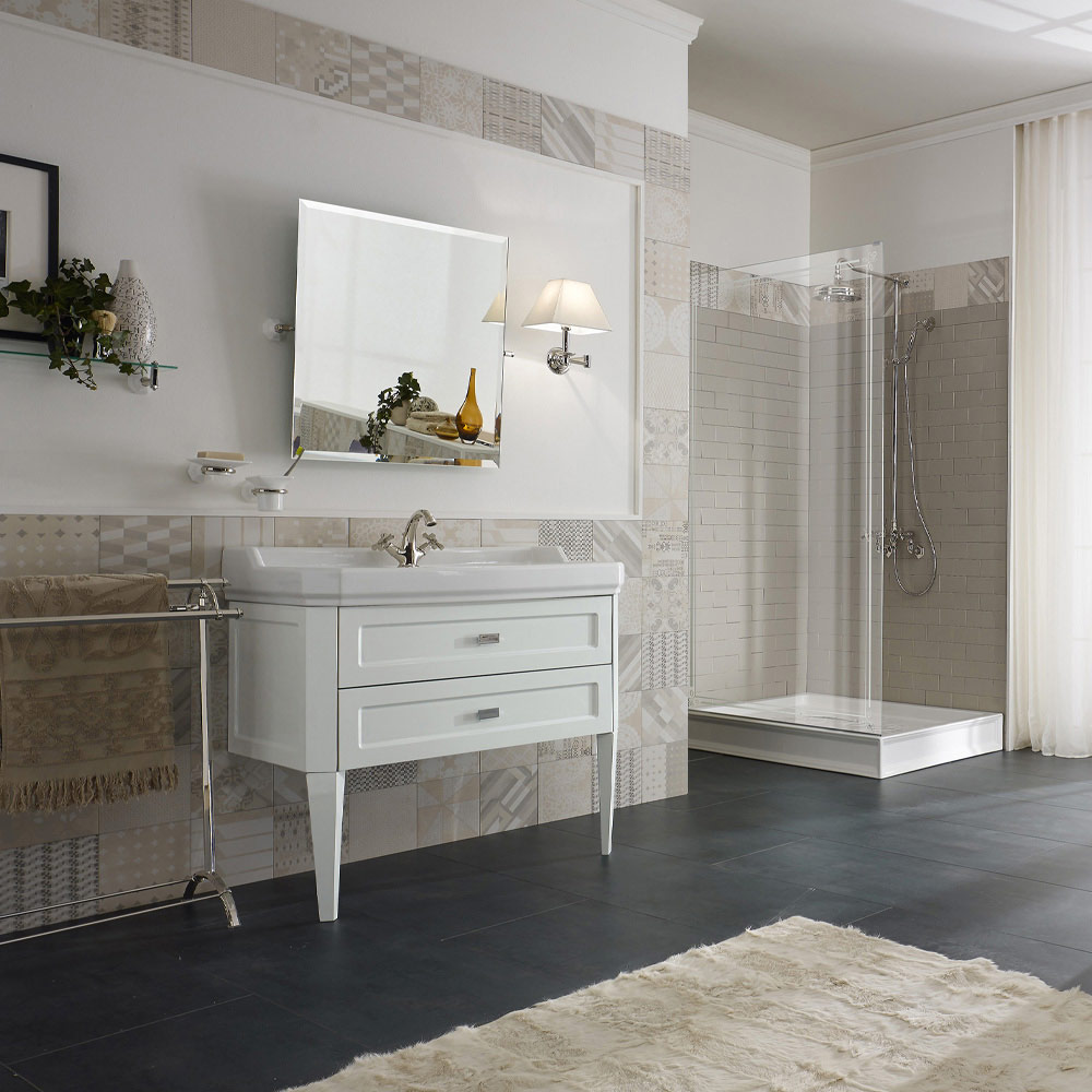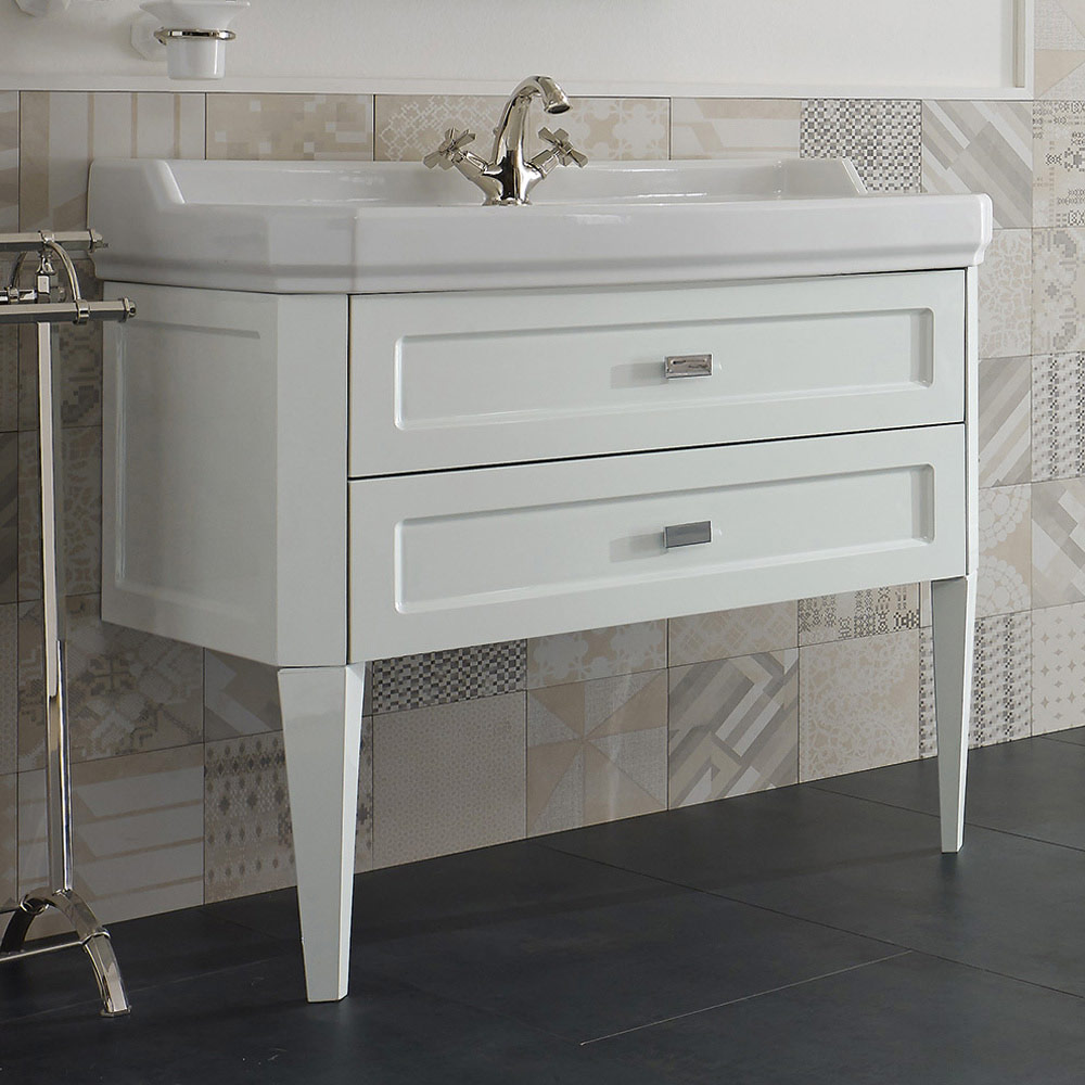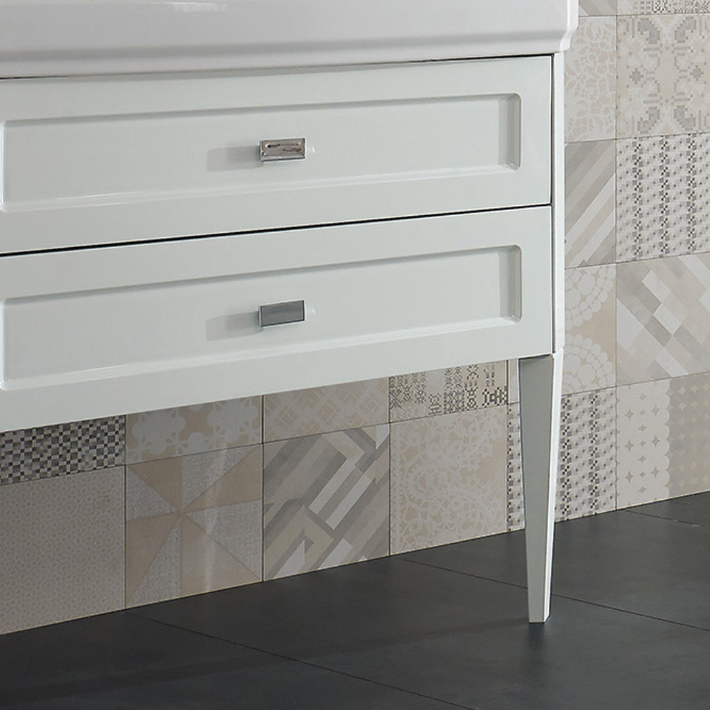 Biancospino badkamermeubel met twee lades en keramische spoelbak Made in Italy