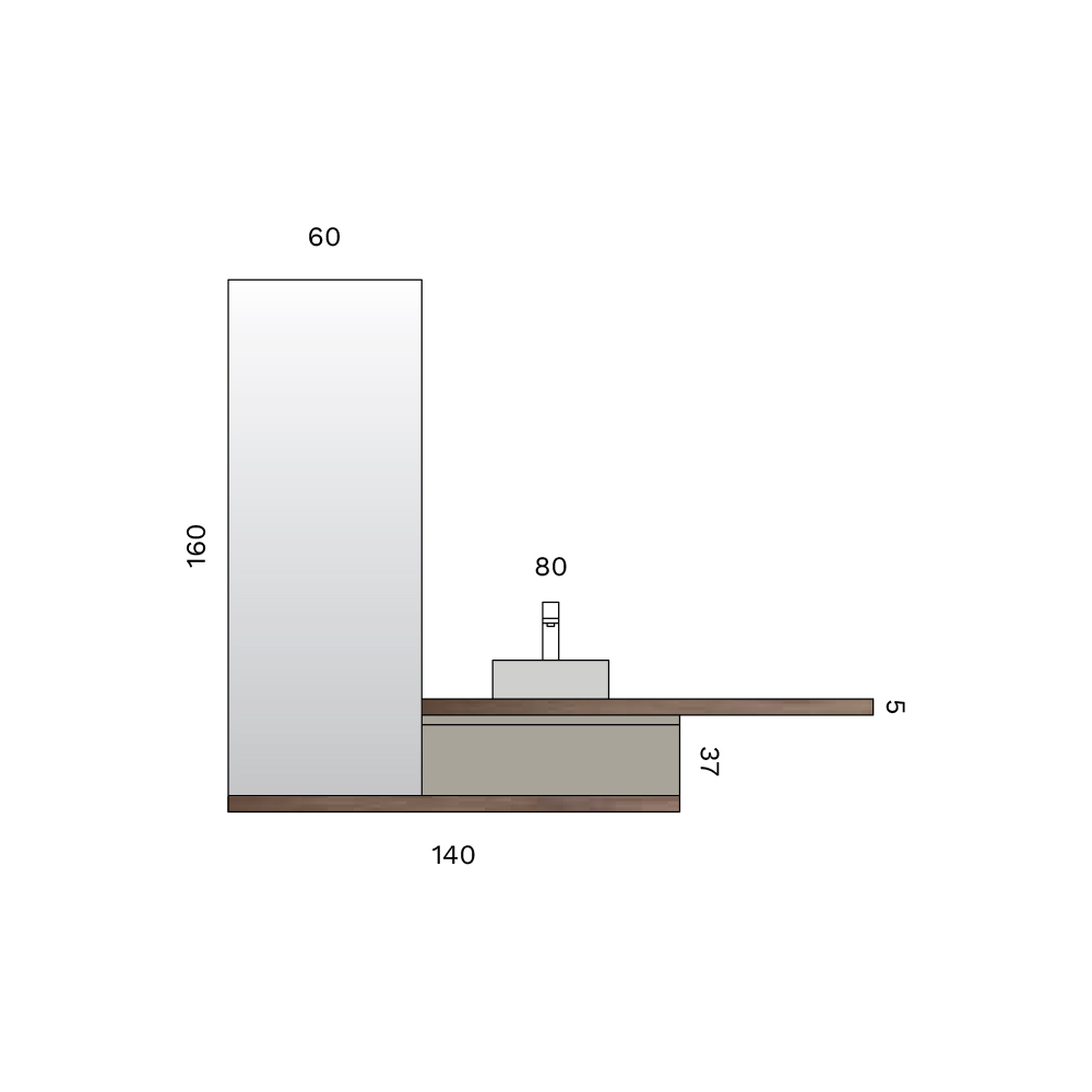 De spiegel van 160x60 cm vergroot de helderheid van de ruimte, terwijl de LED-lamp met chromen afwerking zorgt voor precieze en elegante verlichting, ideaal voor de wastafel.
