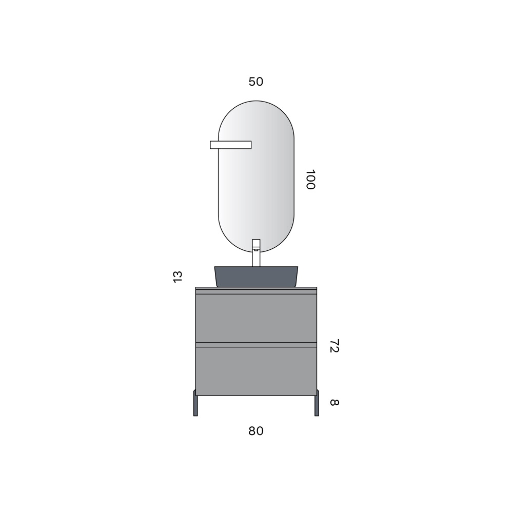 De basis met twee grote lades in een matgrijze afwerking garandeert voldoende opbergruimte en een strakke uitstraling, versterkt door de 8 cm hoge antracietkleurige buitenpoten die zorgen voor een lichte en stabiele look.