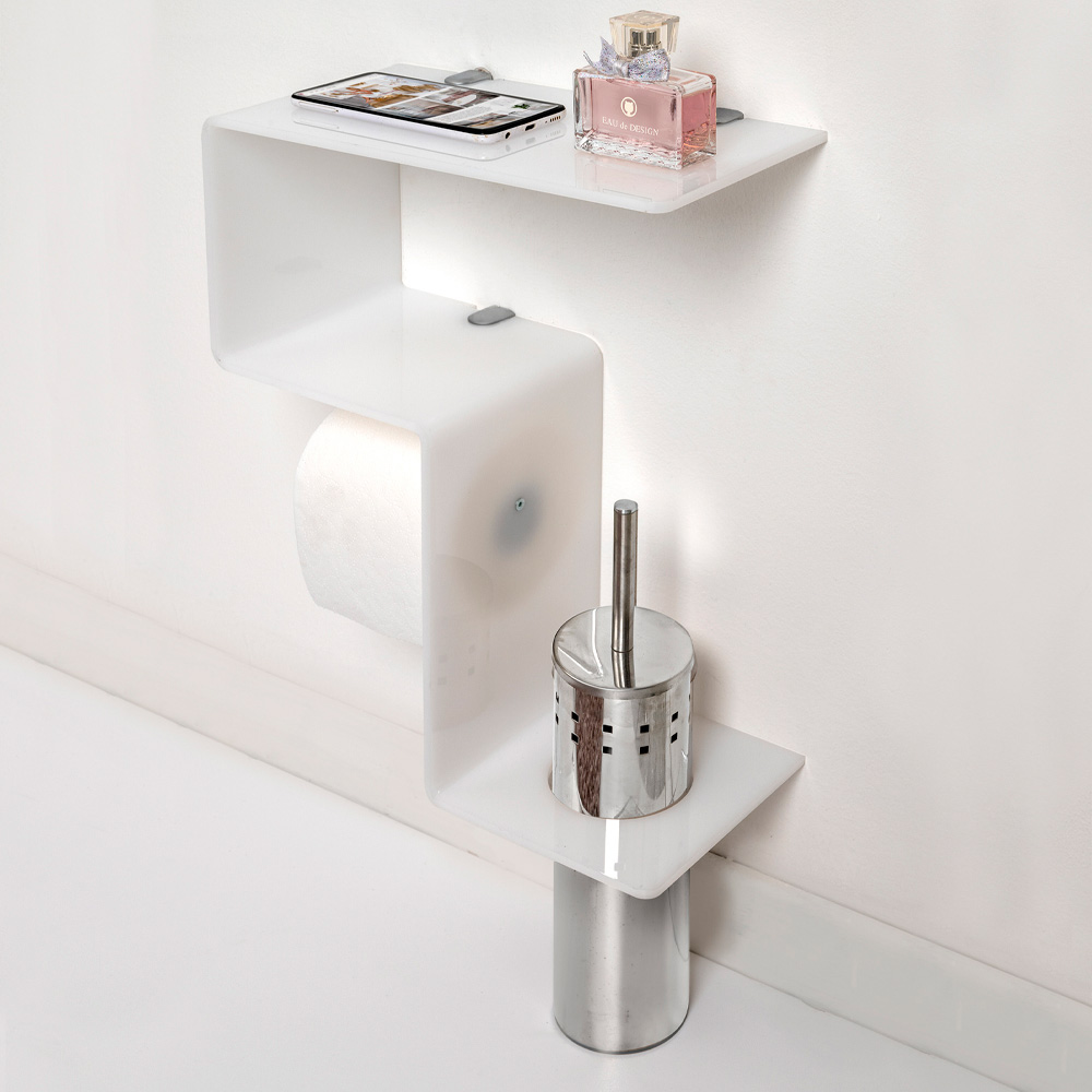 De toiletrolhouder belichaamt verfijnde esthetiek en ongeëvenaarde functionaliteit , alles in één badkamerdecor. Dit accessoire is volledig gemaakt van plexiglas van de hoogste kwaliteit en garandeert compromisloze weerstand en duurzaamheid. Het ontwerp, gekenmerkt door vloeiende en moderne lijnen, maakt dit object niet alleen tot een handig hulpmiddel voor dagelijks gebruik, maar ook tot een designelement dat uw badkamer kan onderscheiden met een vleugje elegantie en unieke helderheid. De nieuwe polymeerafwerkingen passen perfect in elke context en geven helderheid en schittering die in de loop van de tijd onveranderd blijven, waardoor de badkamer helder en uitnodigend blijft. De praktische en intelligente structuur biedt het gemak dat u alles wat u nodig heeft bij de hand heeft, zonder dat dit ten koste gaat van de stijl.