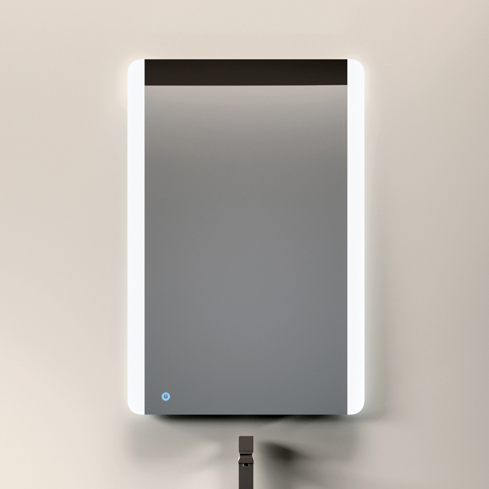 De gevormde spiegel completeert de compositie met een elegante, grafische toets en voegt lichtheid en diepte toe aan de ruimte. Het resultaat is een badkamer met een eigentijdse uitstraling, ideaal voor wie op zoek is naar verfijnde maar functionele meubels.