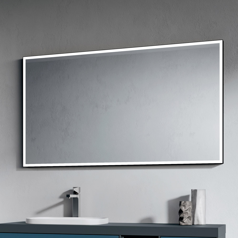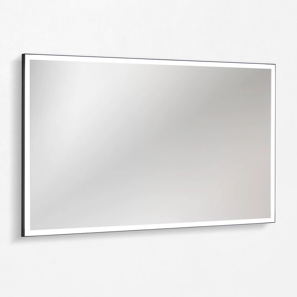 De 120x70 cm matzwarte LED-spiegel maakt het geheel compleet; een elegante en minimalistische toevoeging die de badkamerverlichting versterkt en bijdraagt aan een verfijnde en eigentijdse sfeer.