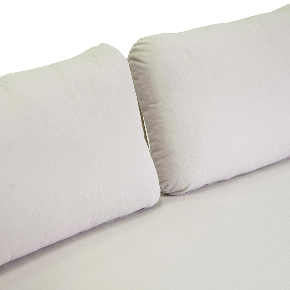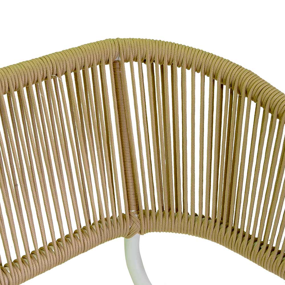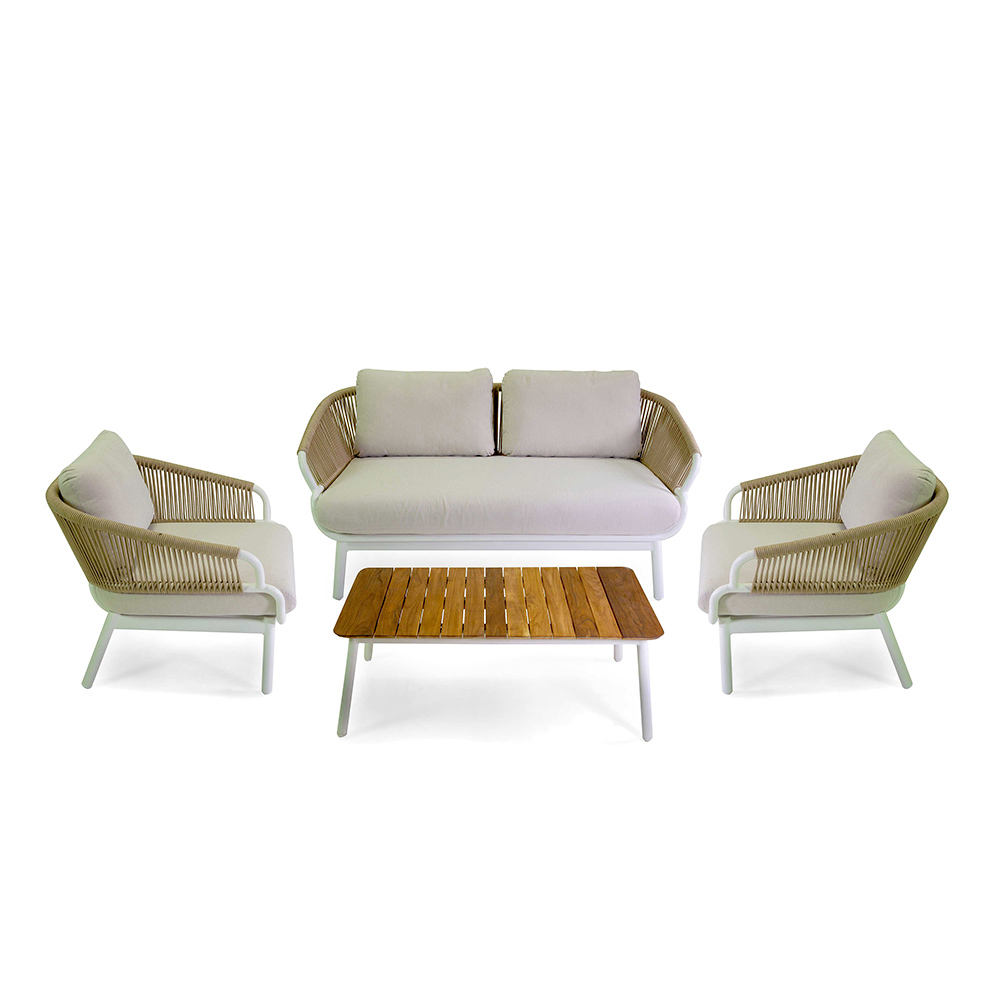 De elegante lijnen en verfijnde afwerkingen worden verrijkt door de touwen, die niet alleen een vleugje visuele verfijning toevoegen, maar ook ideale ventilatie tijdens de warmere maanden. De zachte en dikke kussens bieden maximaal comfort en nodigen uit tot momenten van ontspanning onder de zon of de sterrenhemel.