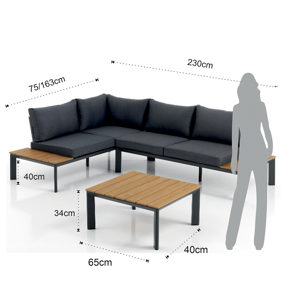 | Maatregelen | bank: 230x75/163x76 cm / salontafel: 65x40x34 cm |