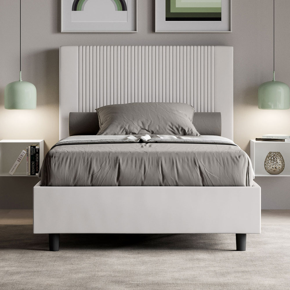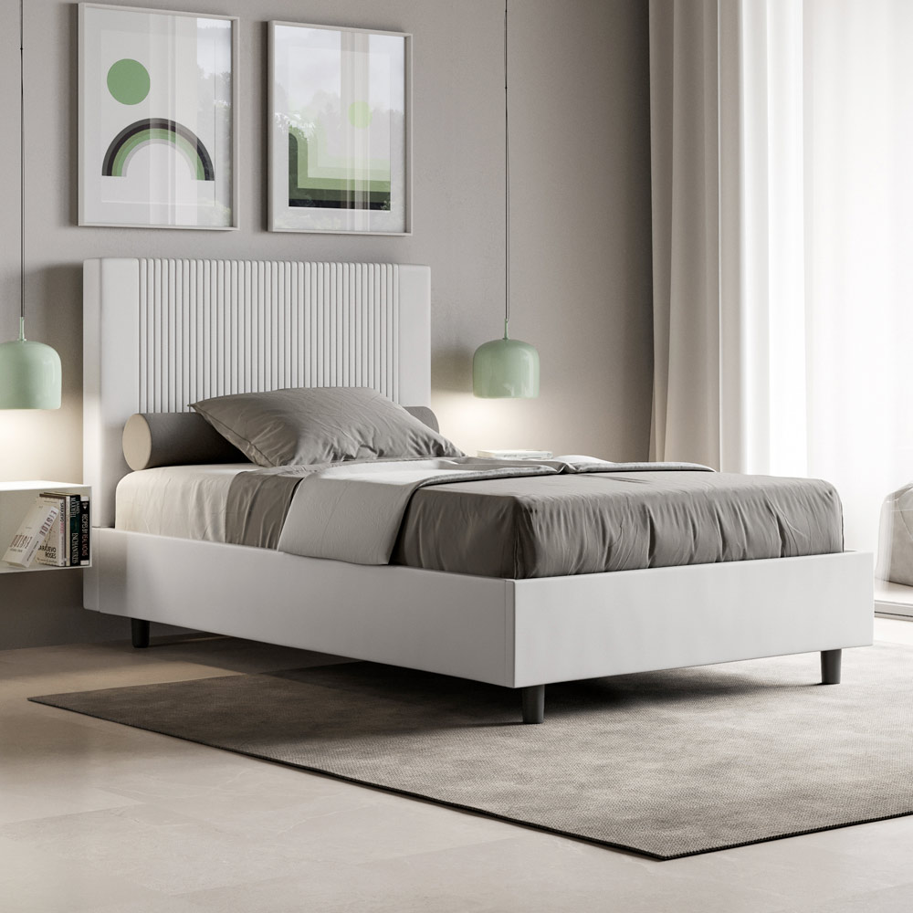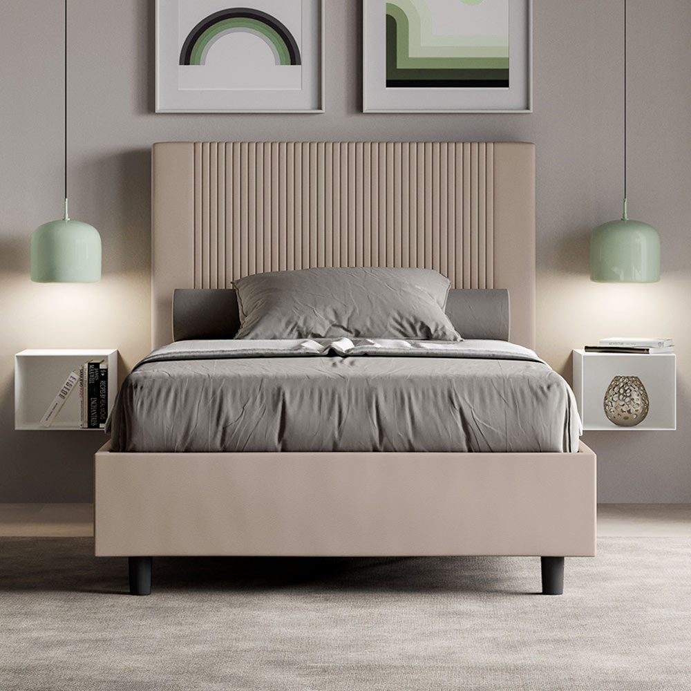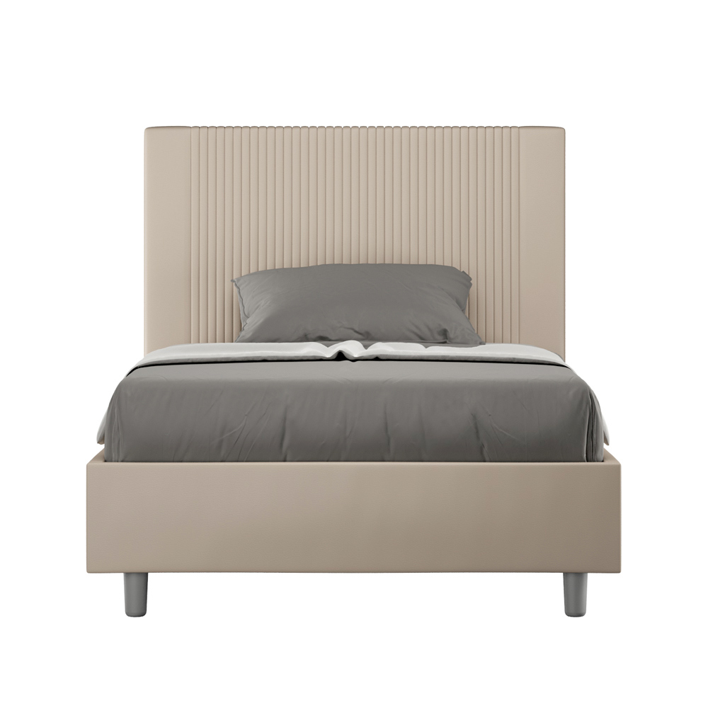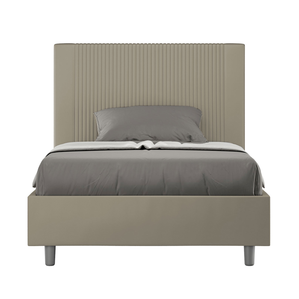 Queensize bed, 120x200 cm, gewatteerd en bekleed met kunstleer, gemaakt in Italië.