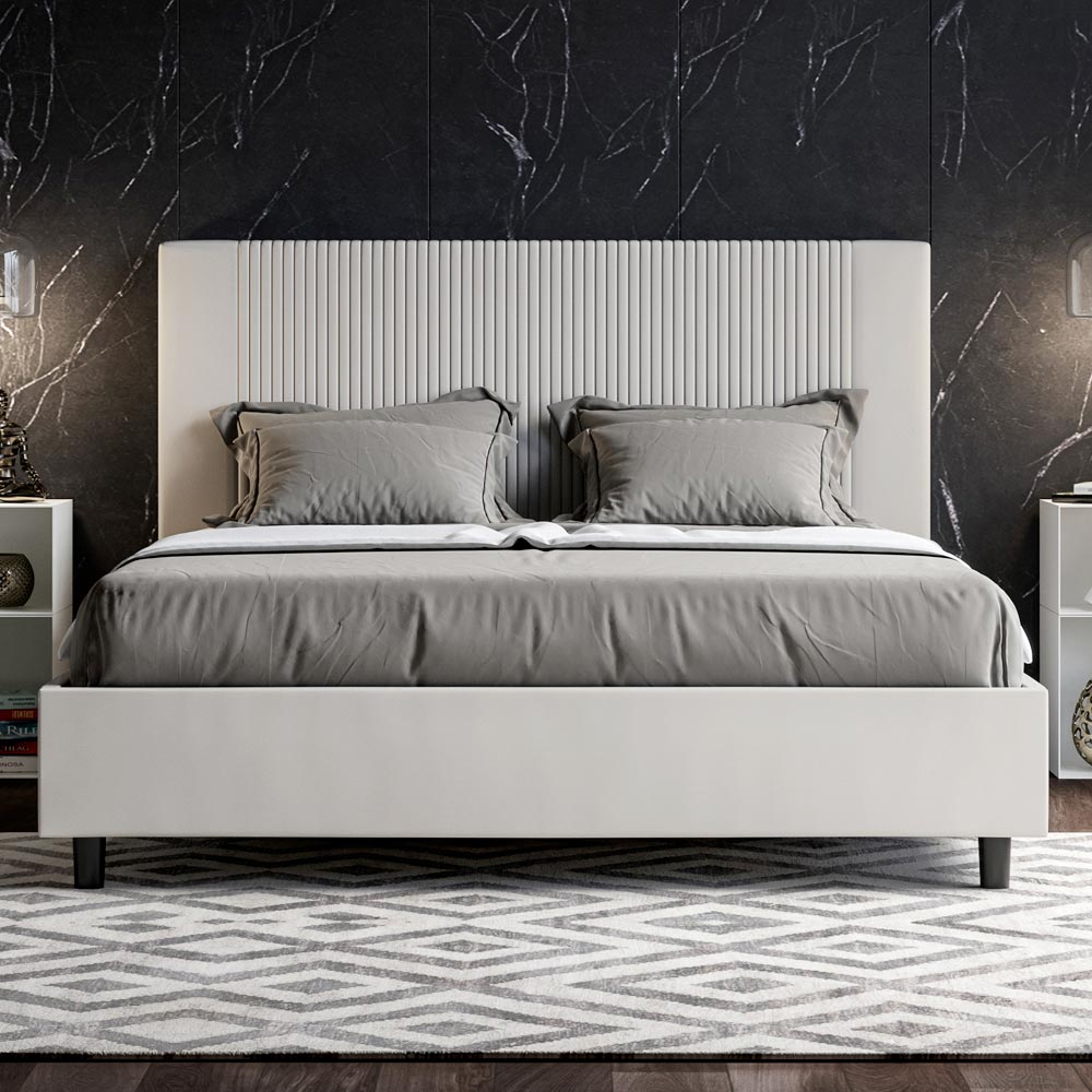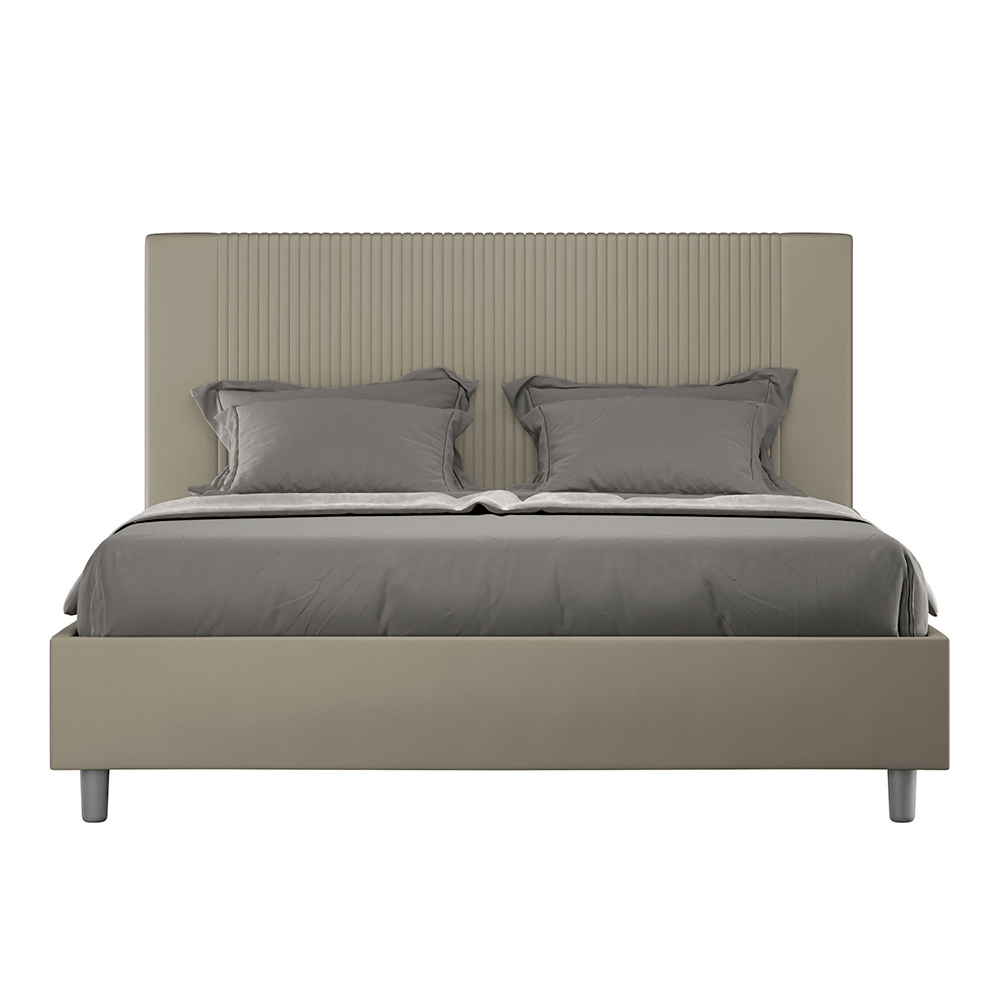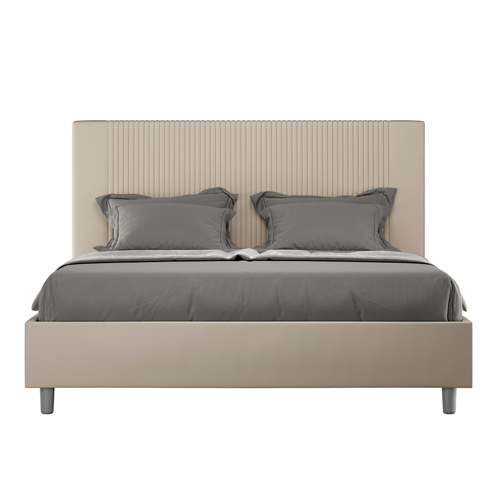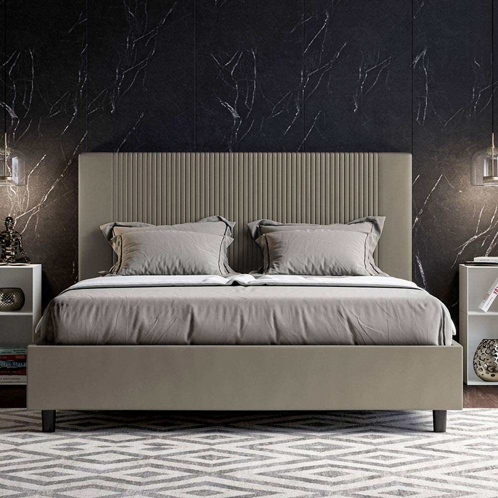 Gewatteerd tweepersoonsbed van 160x200 cm, gemaakt van spaanplaat en bekleed met kunstleer , volledig Made in Italy. Dit tweepersoonsbed, met zijn gestoffeerde bedframe, is een Italiaans product vervaardigd van kunstleer. Het eenvoudige maar moderne ontwerp is perfect voor ruimtes die zich kenmerken door verfijnde elegantie. Het belangrijkste kenmerk van dit model is het hoofdbord, versierd met een verticaal lijnmotief , ideaal voor wie het wil combineren met visueel opvallende ruimtes met prominente muren, zonder daarbij een onmiskenbare elegantie te verliezen.